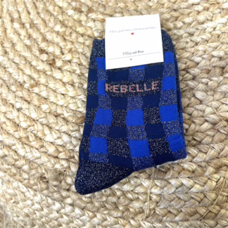 V323- Chaussettes paillettes « Rebelle » (bleu royal)