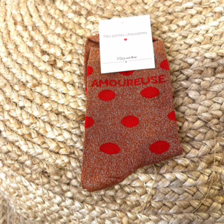 V313- Chaussettes paillettes « Amoureuse » (rouille)