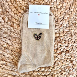 V298- Chaussettes Mila paillettes « Coeur » (beige)