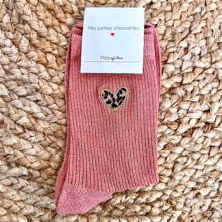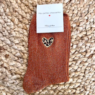 V298- Chaussettes Mila paillettes « Coeur » (rouille)