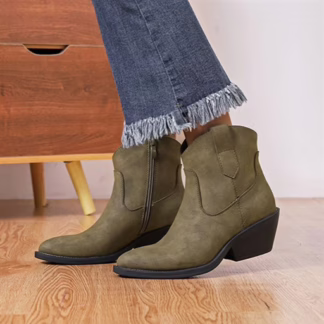 R398- Bottine bi-matière petit talon (T36-T42) (kaki)