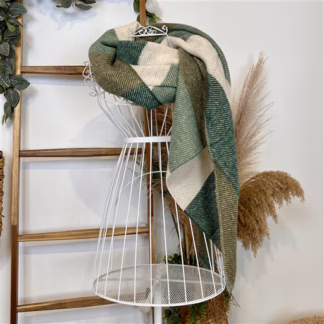 Y501- Écharpe à carreaux asymétrique (kaki)