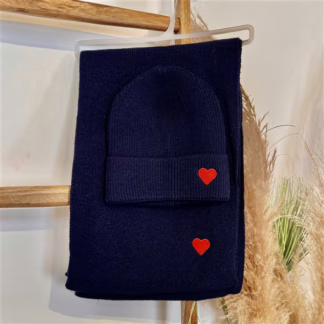 Y495- Ensemble bonnet & écharpe – Détails cœur brodé ❤️ (marine)