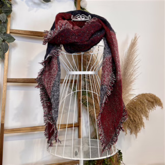 Y501- Écharpe à carreaux asymétrique (bordeaux)