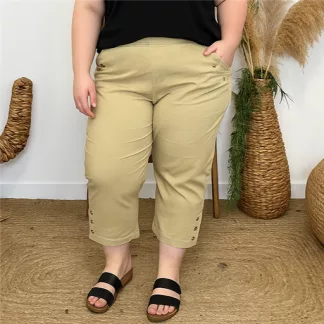 T581- Pantacourt stretch uni JST (T38-T52) (beige)
