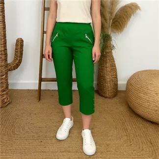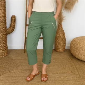 Ce pantalon est fait d’un tissu stretch qui le rend confortable à porter. Il a une taille élastiquée qui le maintient en place, et des poches sur les côtés pour garder vos affaires en sécurité. Il est également doté de zips fantaisie au niveau des poches, qui lui donnent une touche de style.