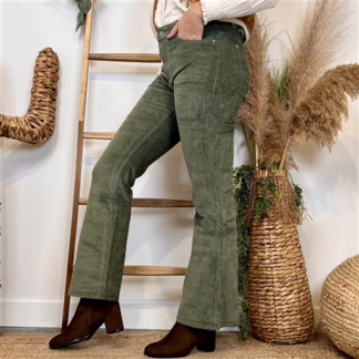 M941- Jean Wide Leg « Velours » Voggo (T36-T42) (kaki)