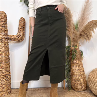 L723- Jupe fendue jean Voggo (T36-T44) (kaki)
