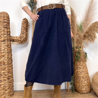 L718- Jupe Midi en Velours à Grandes Poches (marine)