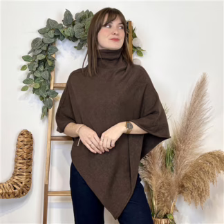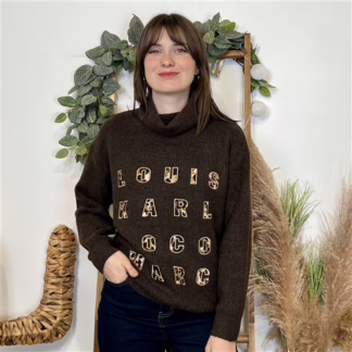 J935 – Pull col roulé fantaisie (TU) (marron)