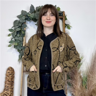 J948 – Gilet en mailles écusson (TU) (taupe)
