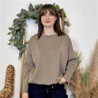 J935 – Pull col roulé fantaisie (TU) (taupe)