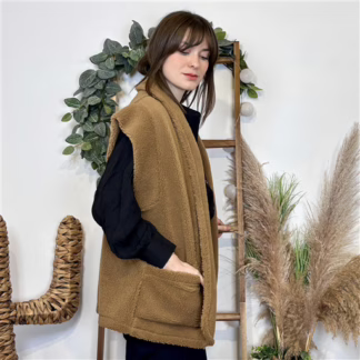 J961 – Veste bouclette sans manches (TU) (vert sapin)