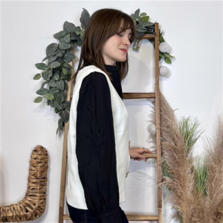 A noter que si vous êtes menue, le gilet à col est parfait. Puisqu’il ajoute du volume au niveau du décolleté sur lequel pourrait se dessiner un beau top en dentelle.