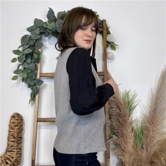 J952 – Gilet sans manche boutons dorés (TU) (gris)