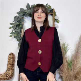J952 – Gilet sans manche boutons dorés (TU) (bordeaux)