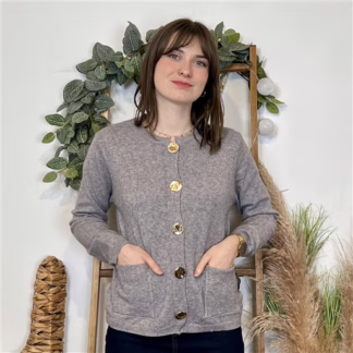 J950 – Gilet manches longues à boutons (TU) (gris)