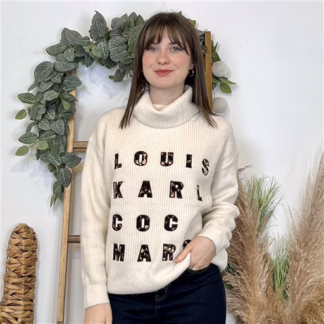 J935 – Pull col roulé fantaisie (TU) (beige)