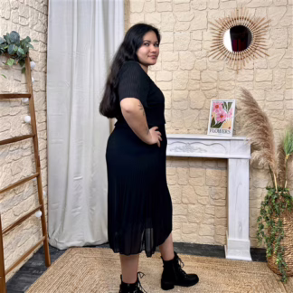 I840 – Robe longue plissée (TU) (noir)