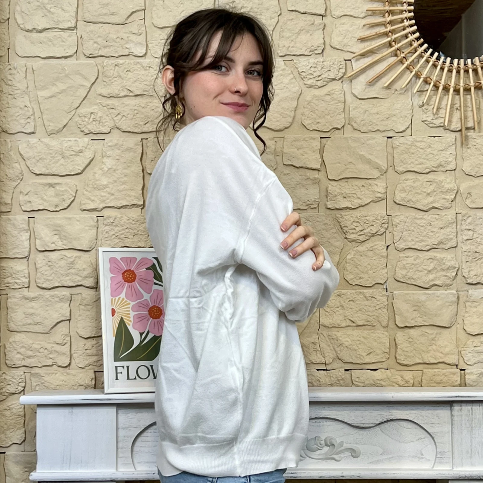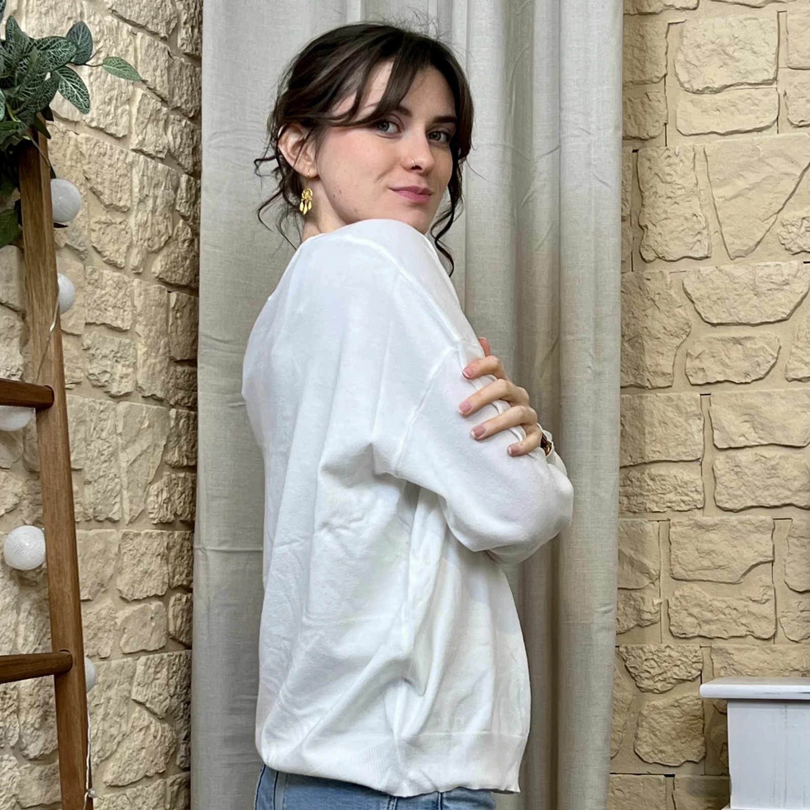 À porter avec un jean pour un look casual chic, ou glissé dans une jupe pour une silhouette plus élégante et romantique.