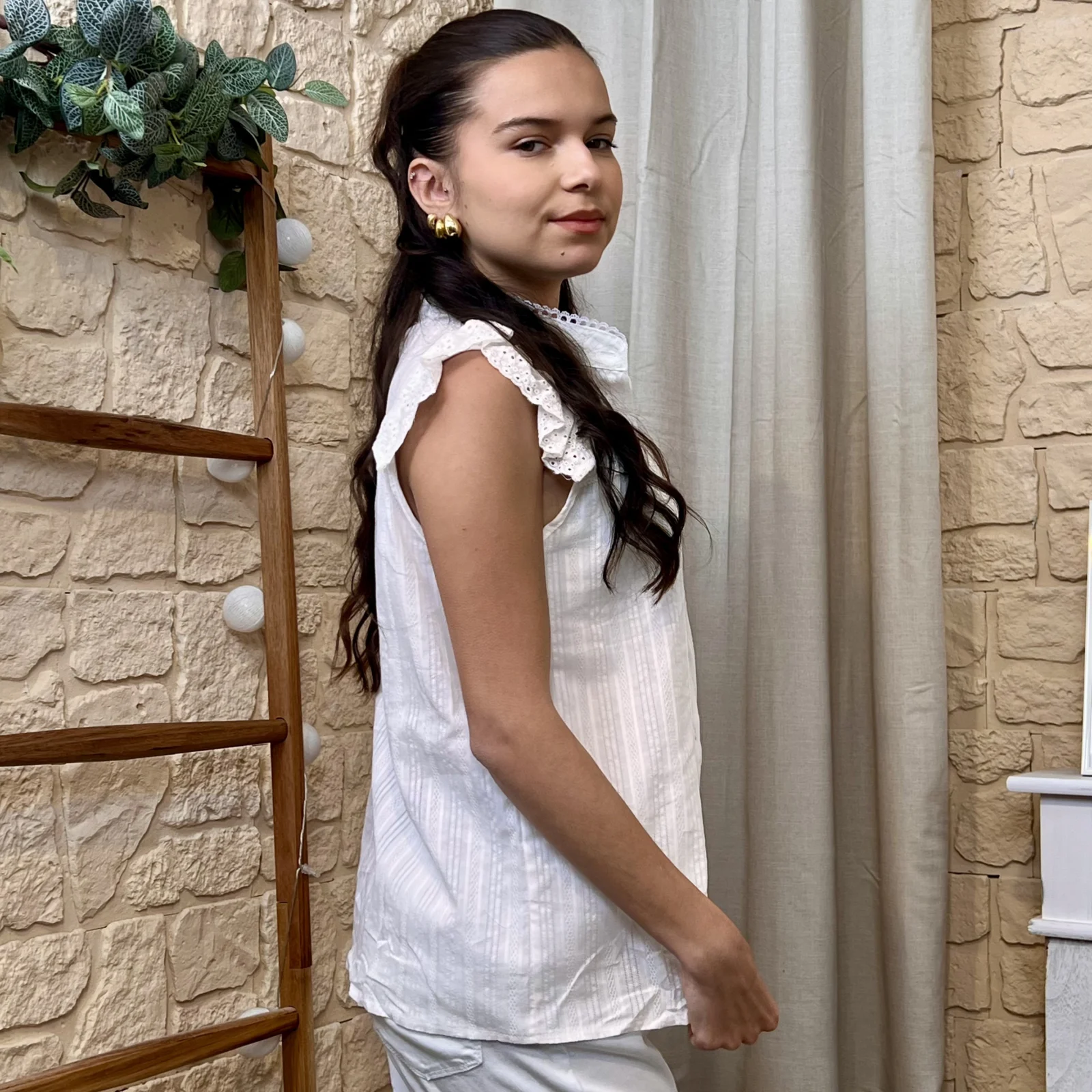 Adoptez un look tendance avec cette chemise brodée. Sa matière en 100% coton est idéale pour la saison. Ses broderies sur l’avant et l’arrière, ainsi que sur les manches sont élégantes et féminines. Facile à associer avec un jean denim pour un look casual ou avec un pantalon plus habillé.