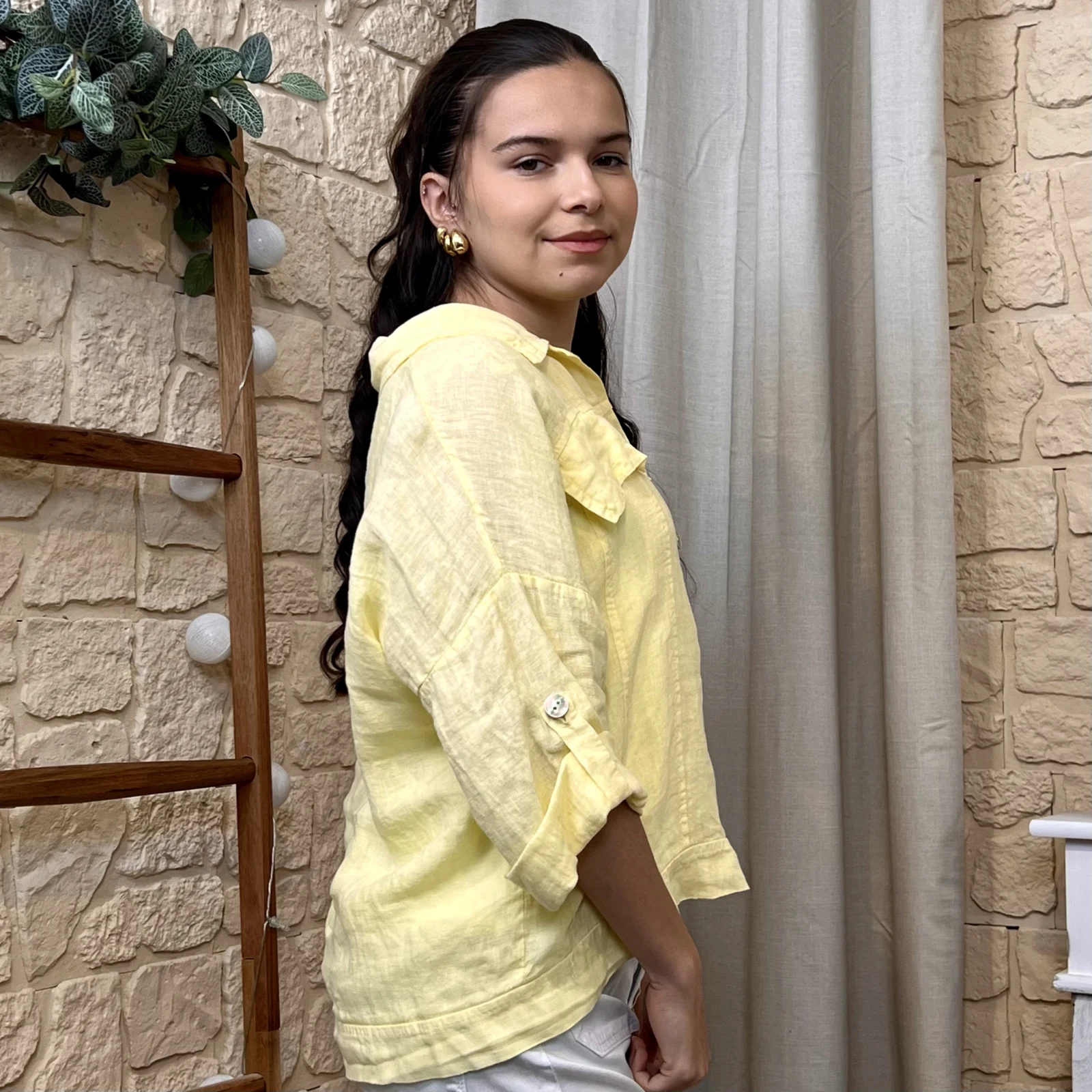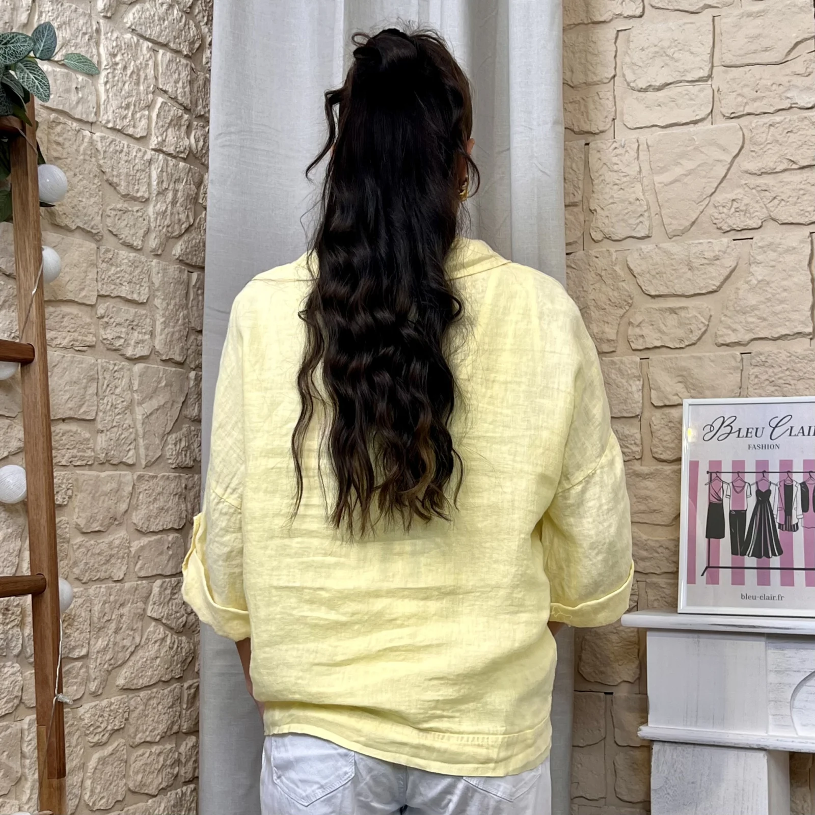 Adopte un style à la fois décontracté et élégant avec cette chemise fluide femme à la coupe ample, parfaite pour un look naturel et tendance. Disponible en plusieurs coloris doux et intemporels (jaune pastel, taupe, bleu et vert), elle s’adapte facilement à toutes tes envies.