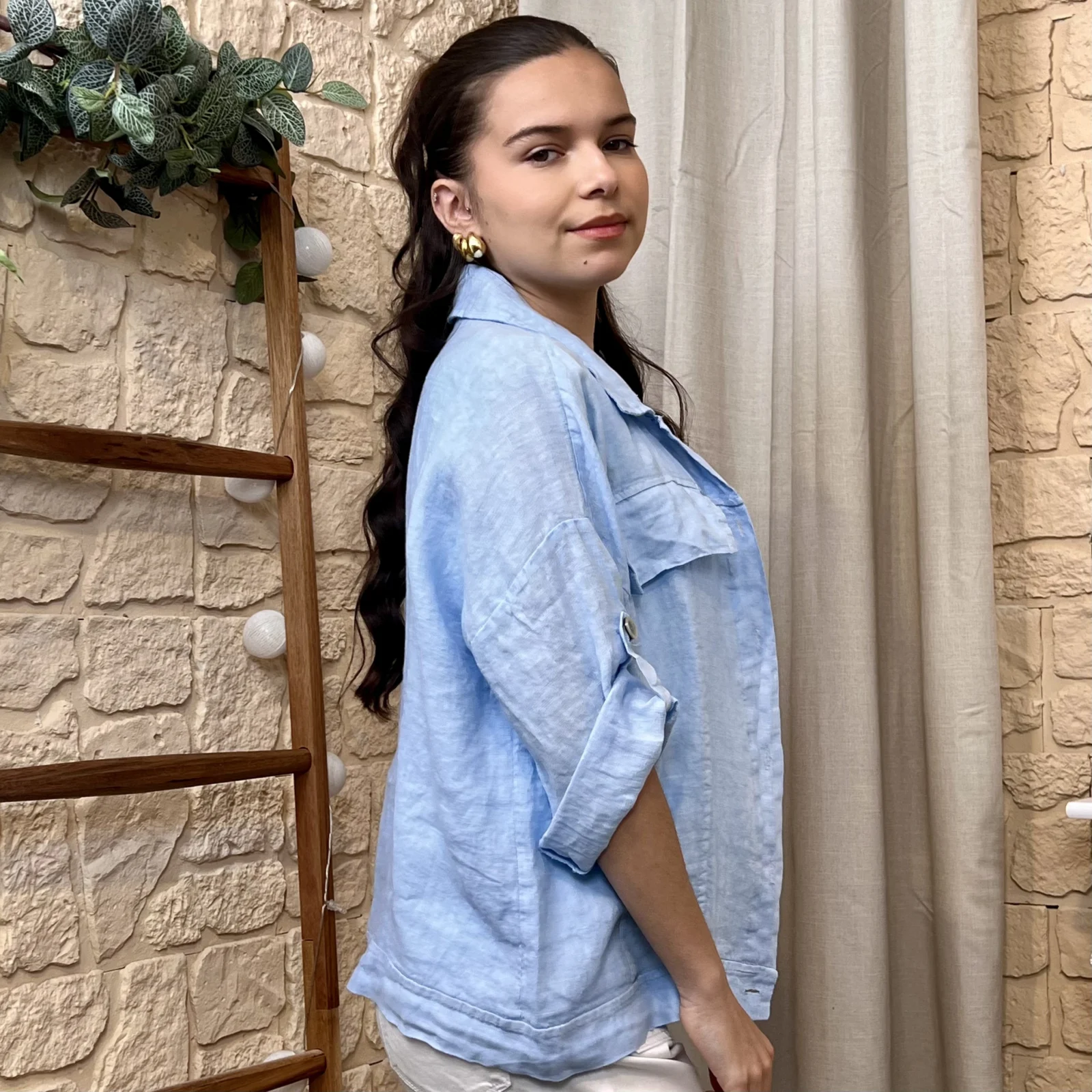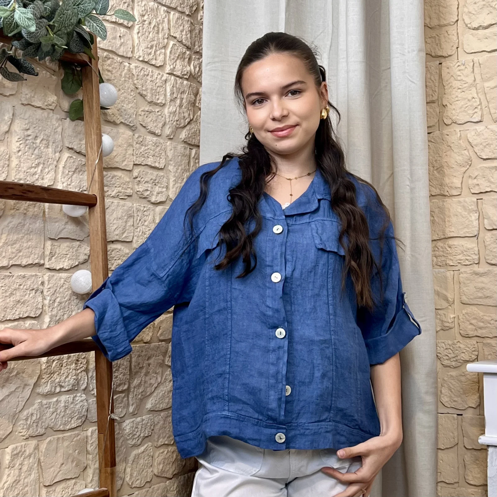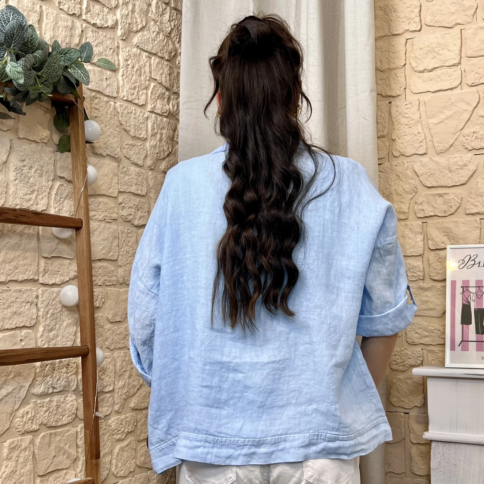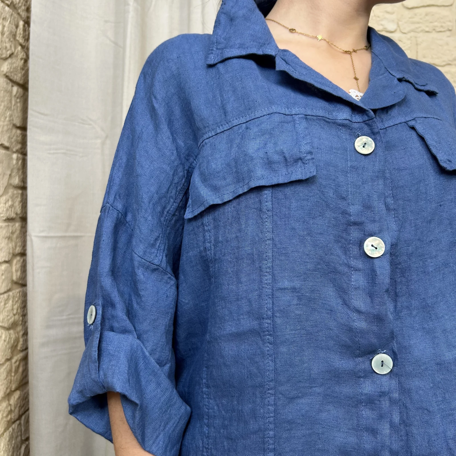 Confectionnée dans une matière légère et agréable à porter, cette chemise offre une silhouette fluide et confortable, idéale pour les journées ensoleillées. Son col chemise classique, sa fermeture boutonnée et ses manches retroussables avec patte de fixation apportent une touche pratique et moderne.