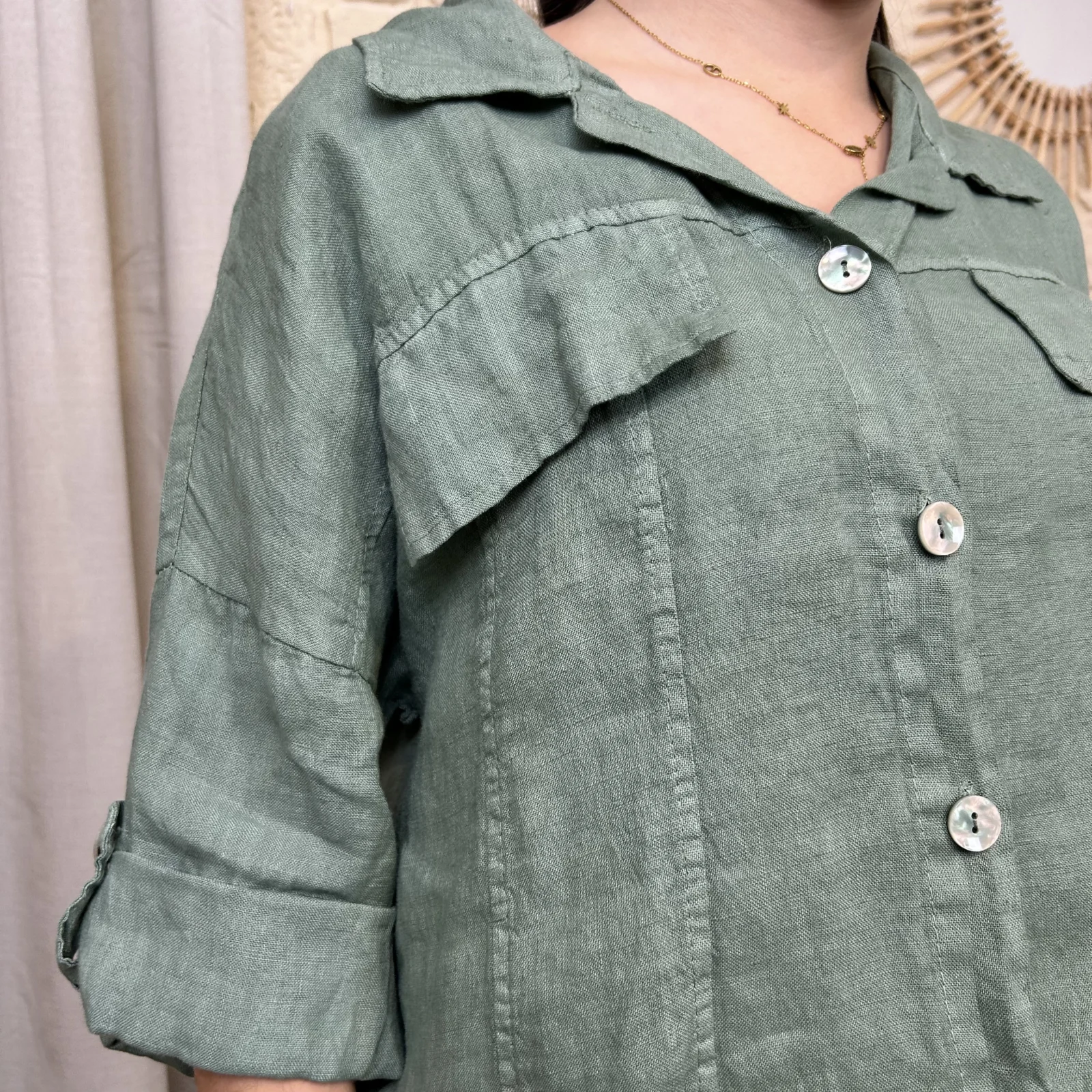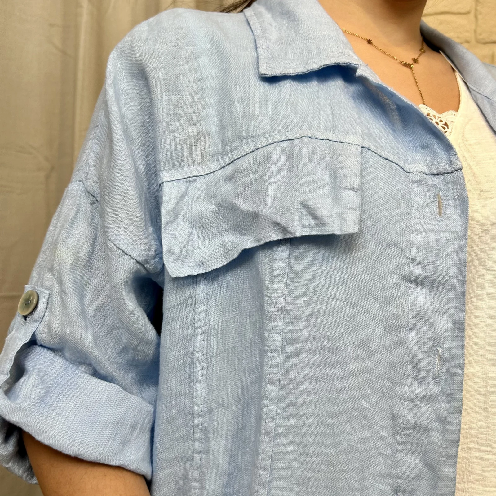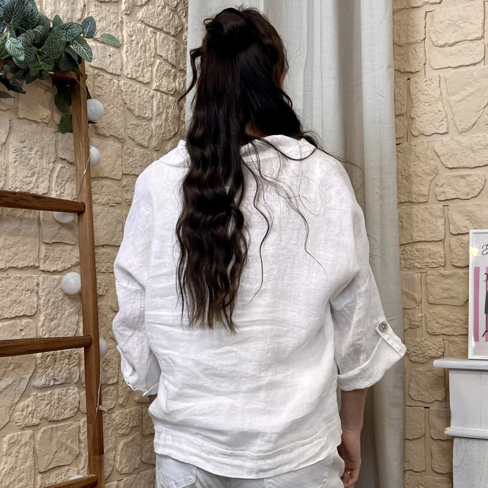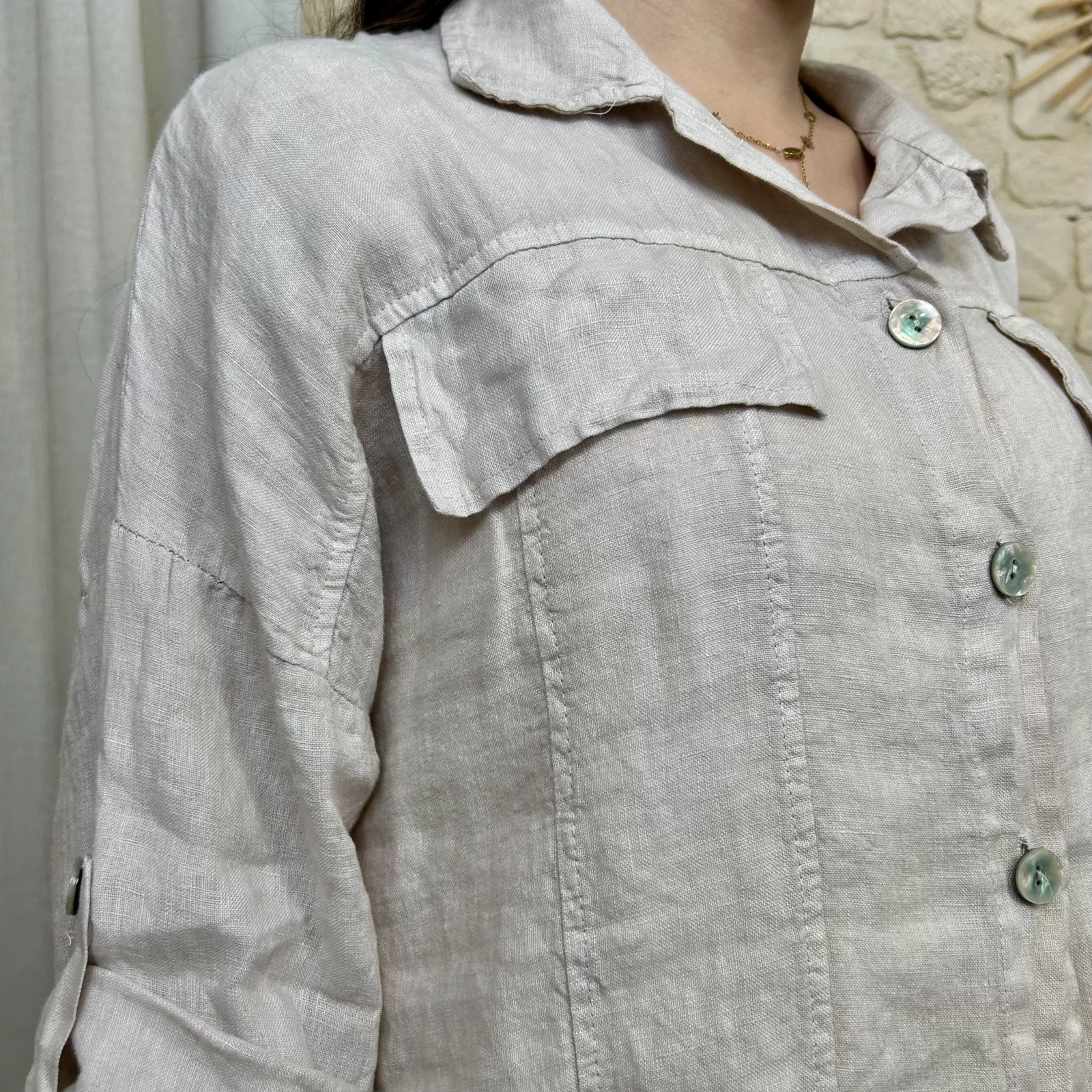 Confectionnée dans une matière légère et agréable à porter, cette chemise offre une silhouette fluide et confortable, idéale pour les journées ensoleillées. Son col chemise classique, sa fermeture boutonnée et ses manches retroussables avec patte de fixation apportent une touche pratique et moderne.