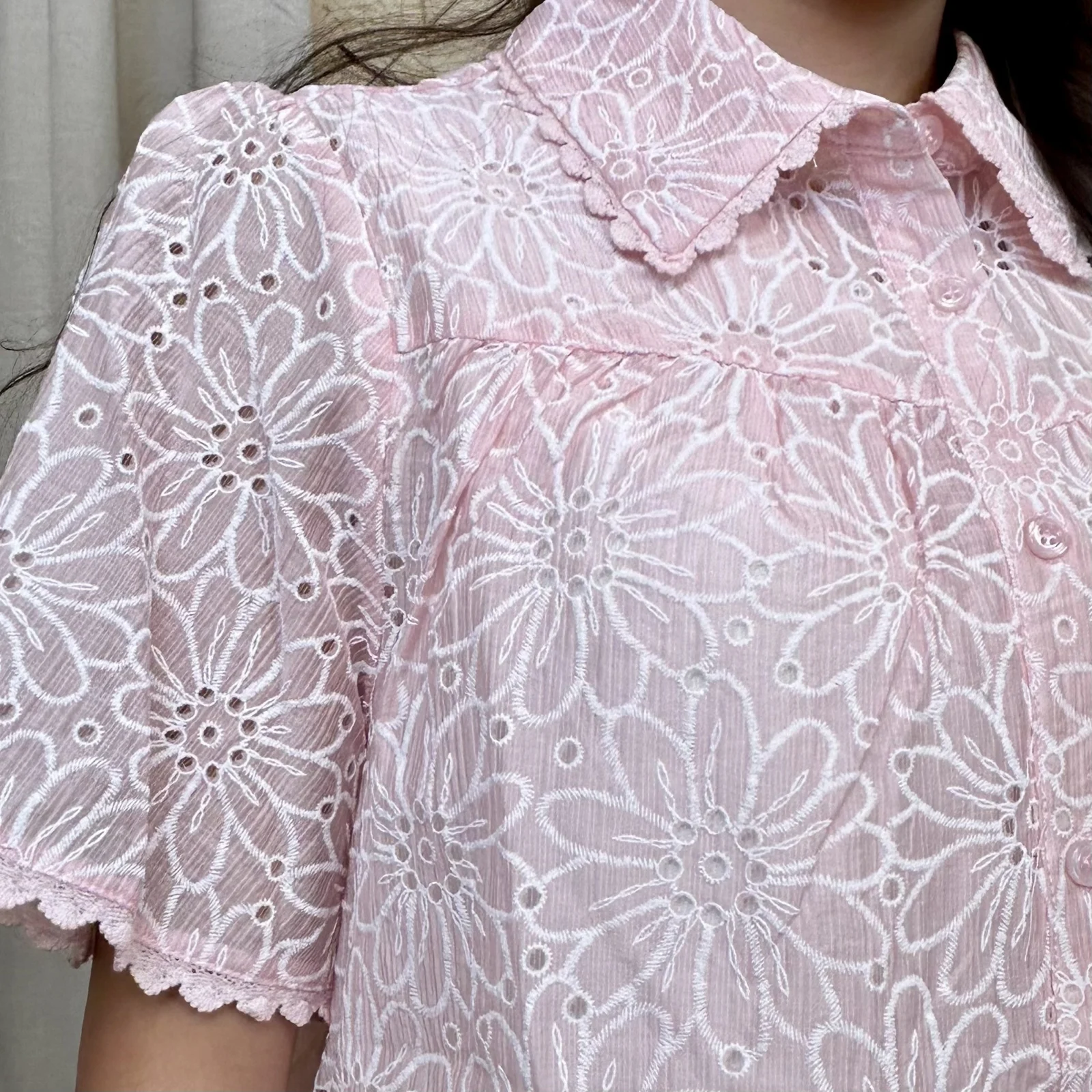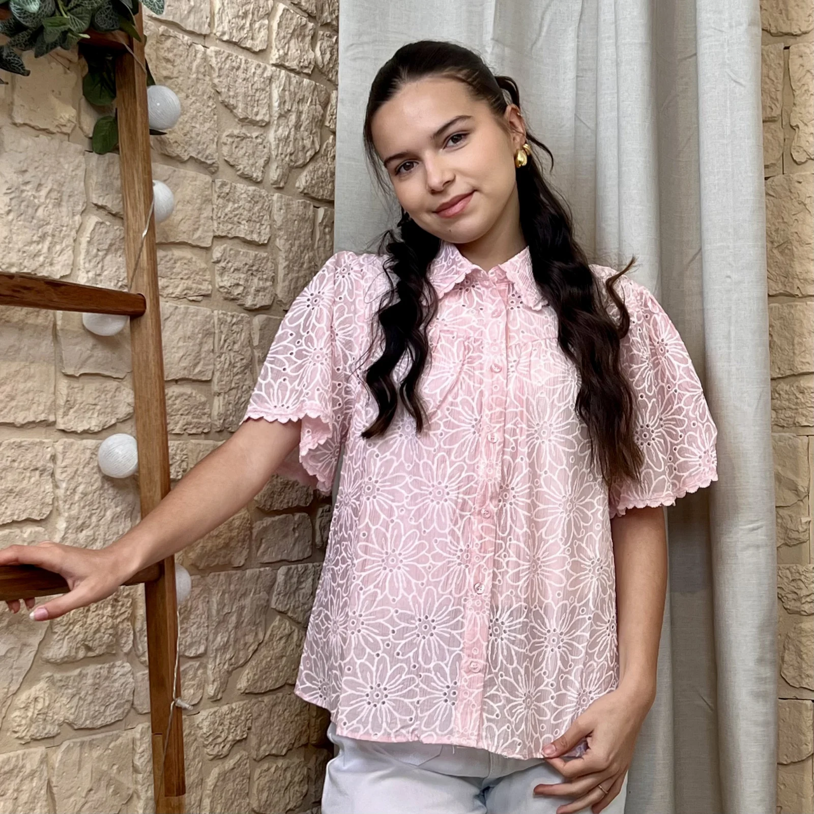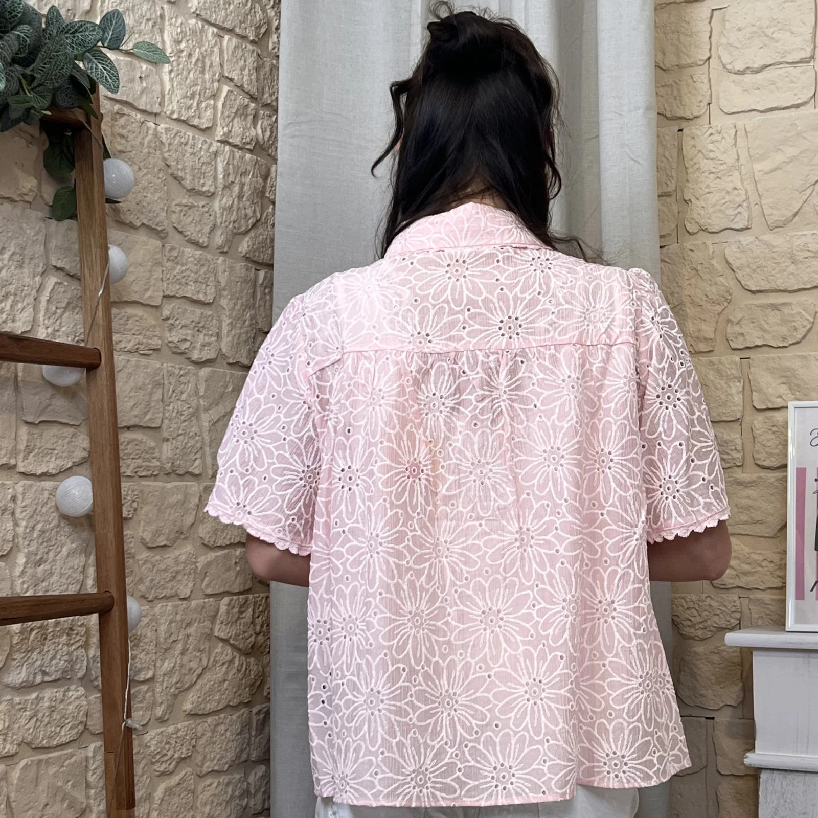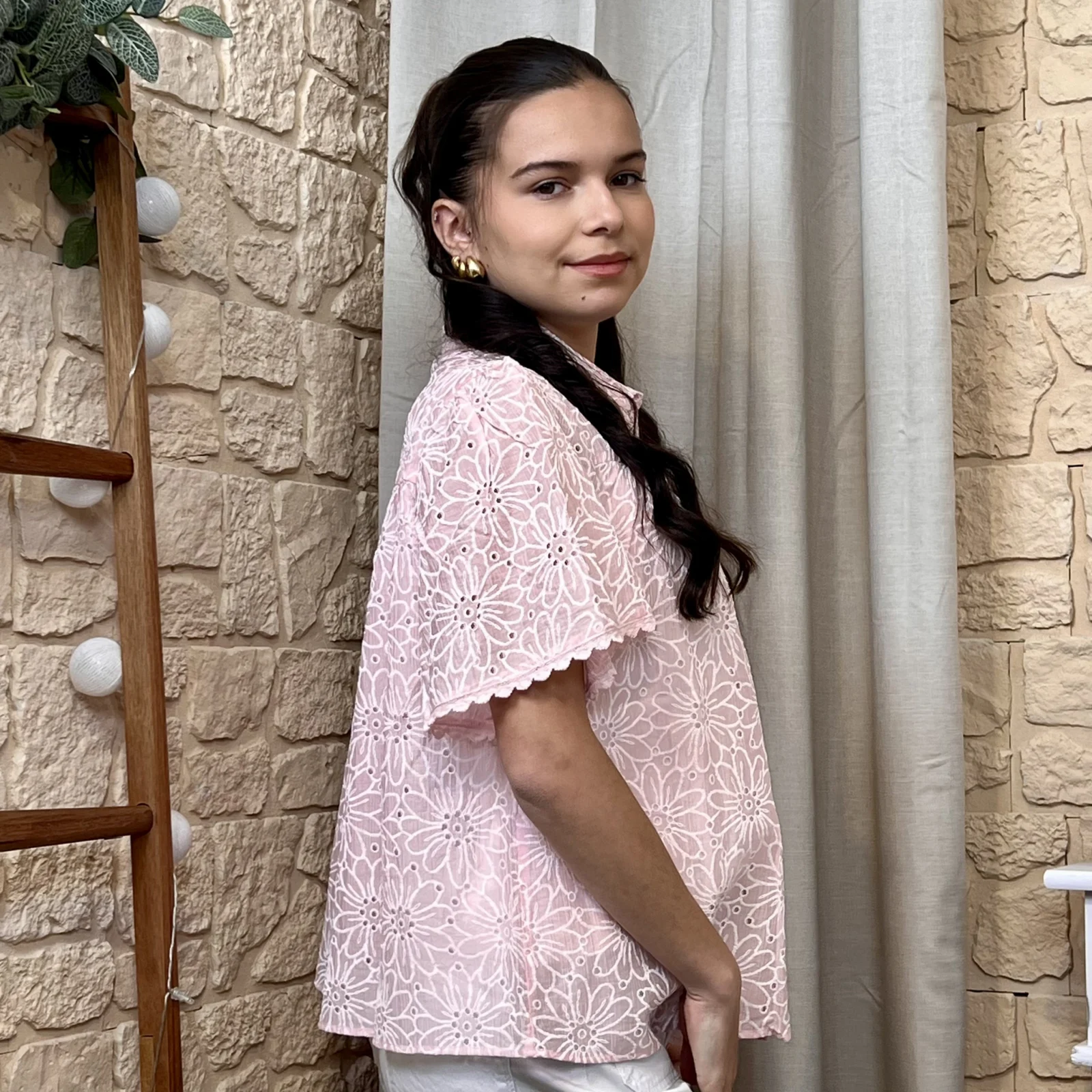 Apporte une touche de douceur à ton dressing avec ce chemisier rose brodé au style romantique, parfait pour une allure féminine et raffinée. Son motif floral délicat en broderie sublime la pièce tout en apportant légèreté et élégance.