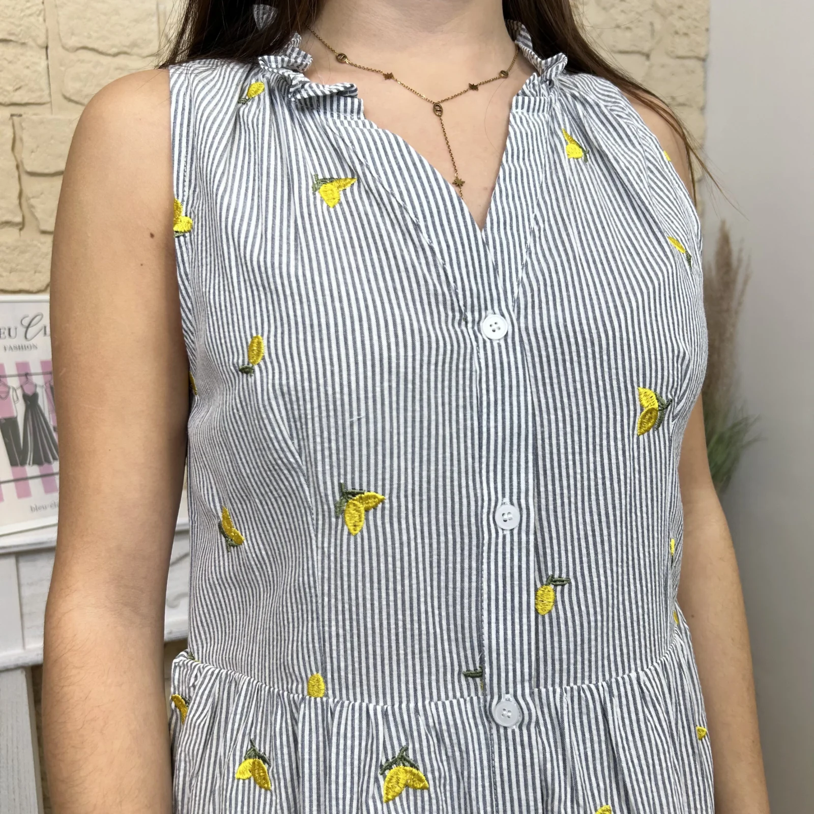 – Motif rayé avec des broderies citrons