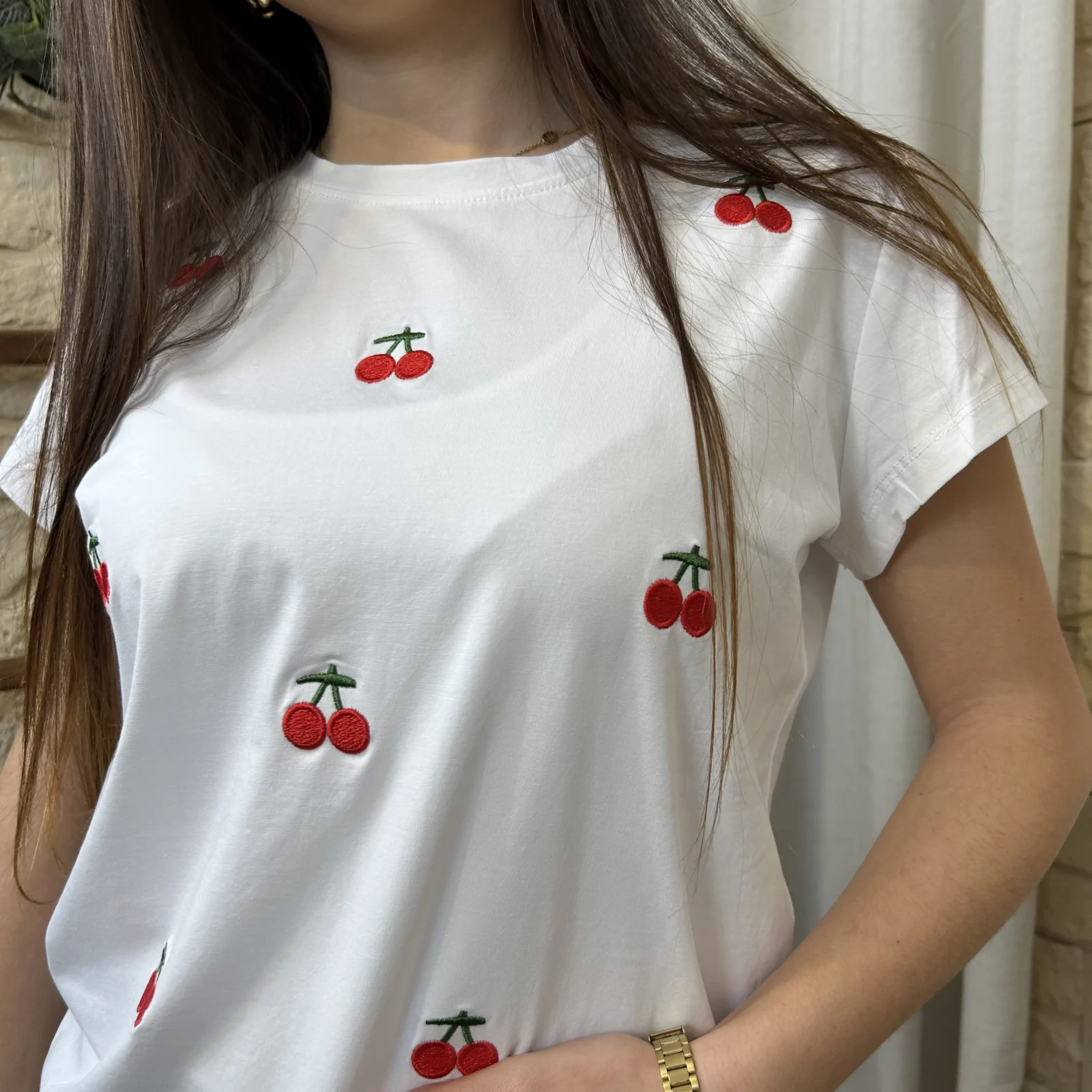 – Motif cerises brodées sur l’avant