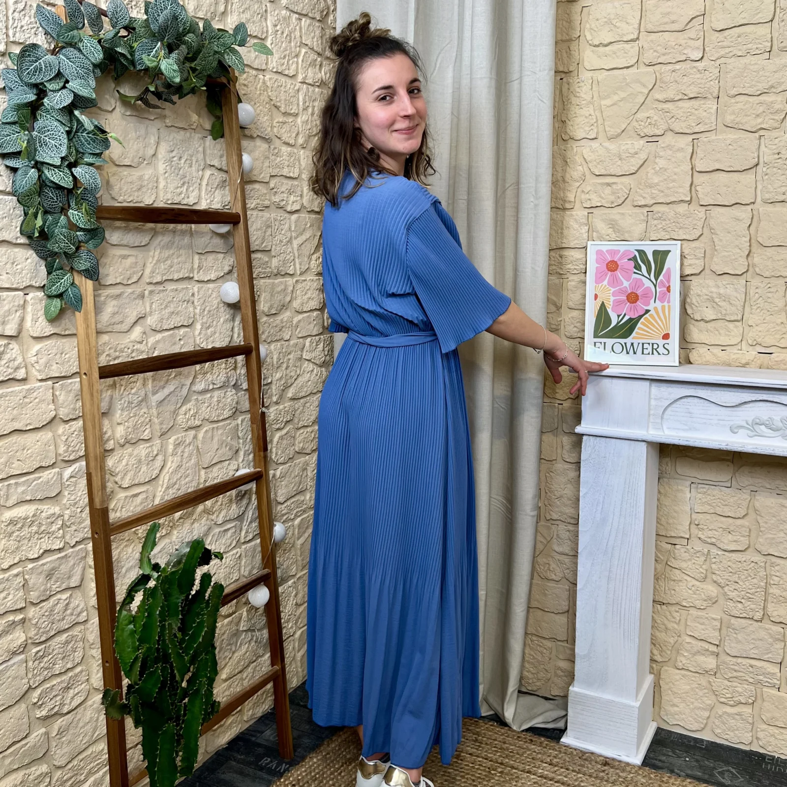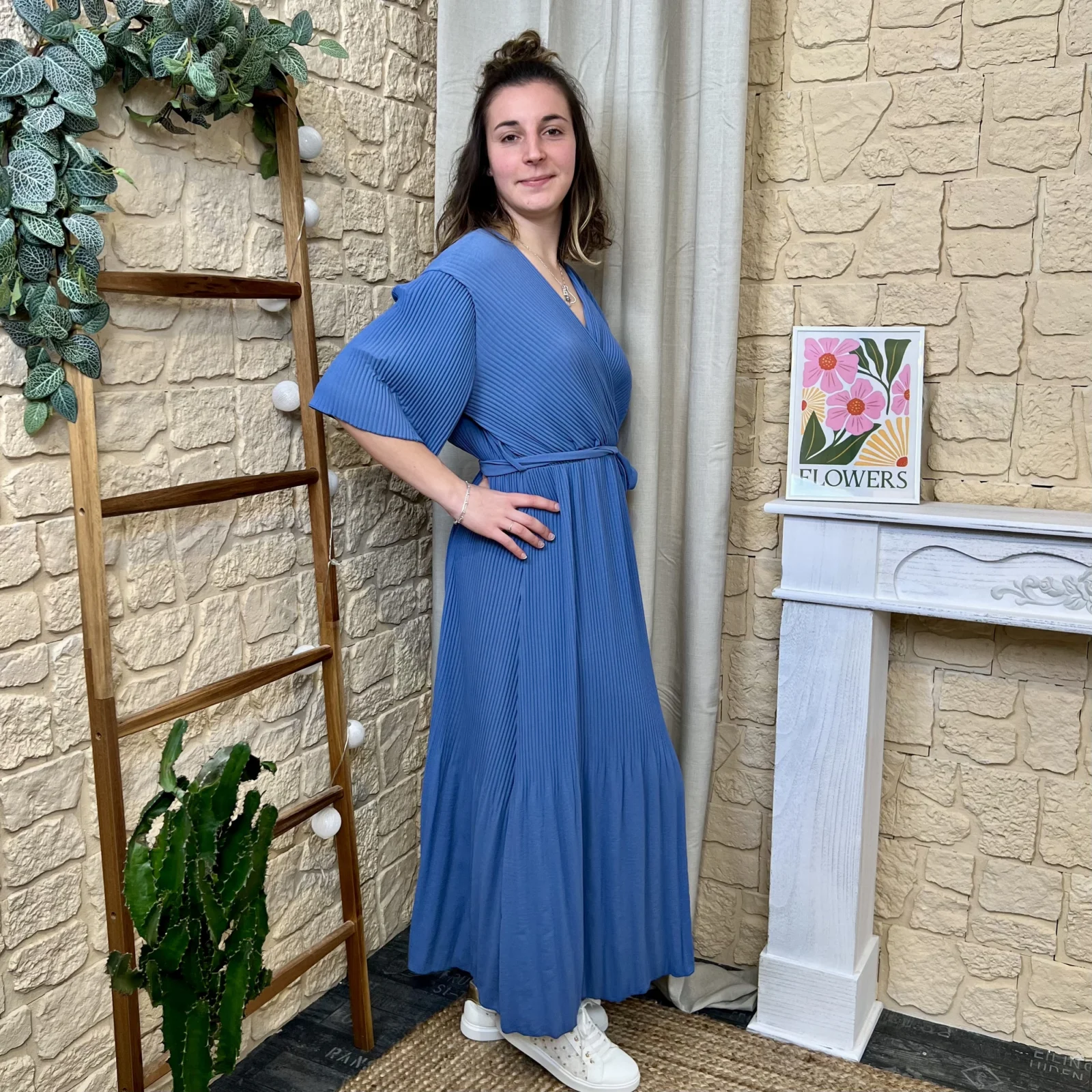 A la fois élégante et confortable, cette robe longue plissée est la pièce idéale pour les femmes qui veulent se sentir belles et à l’aise.