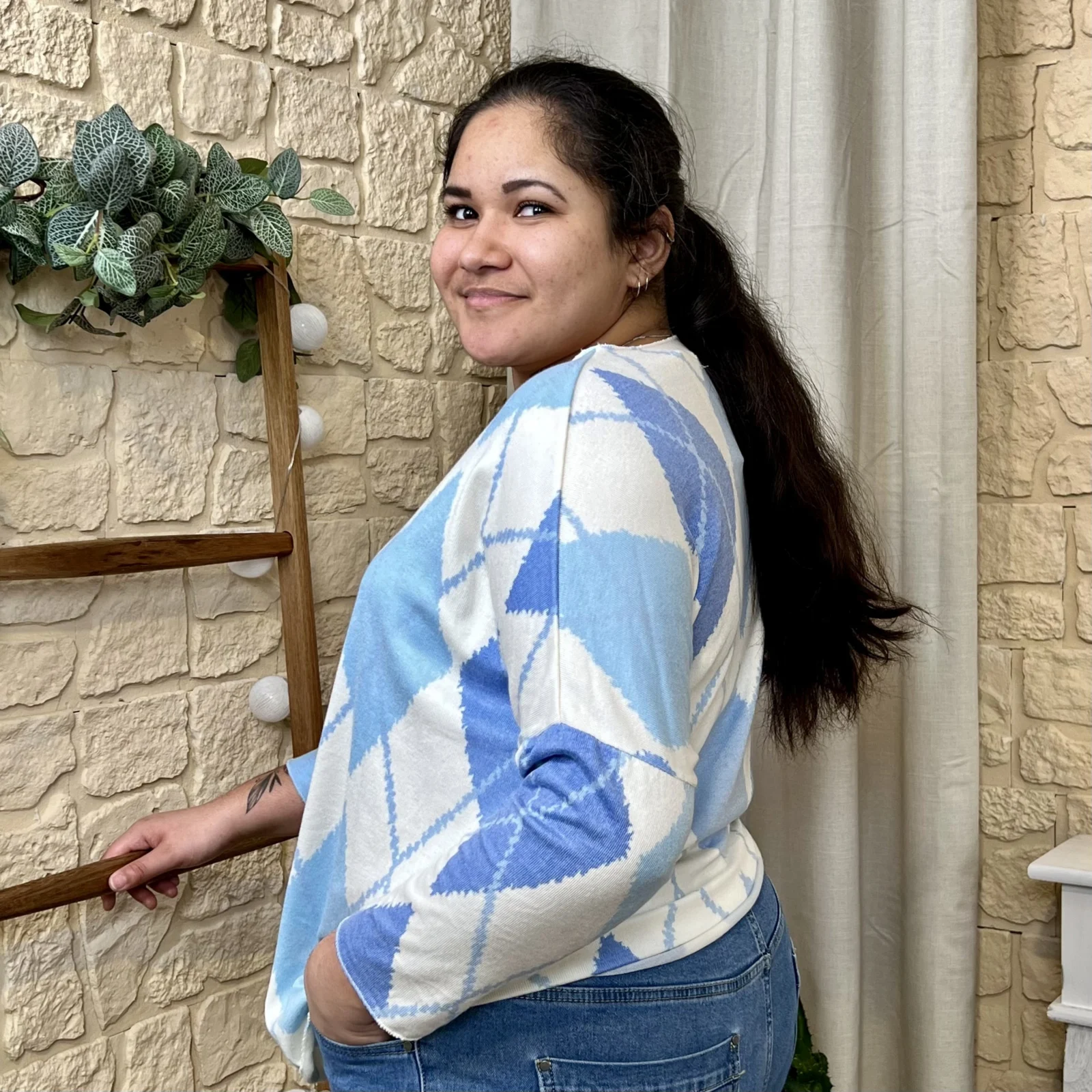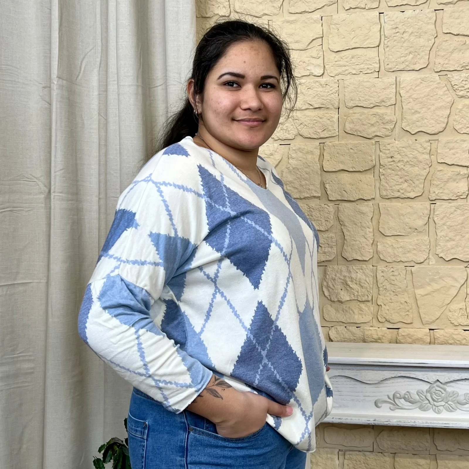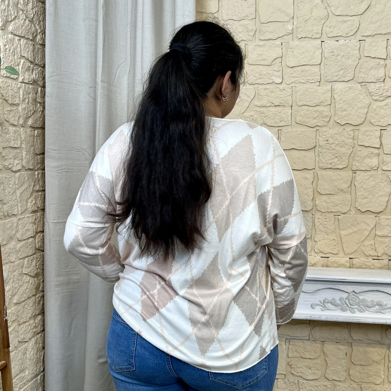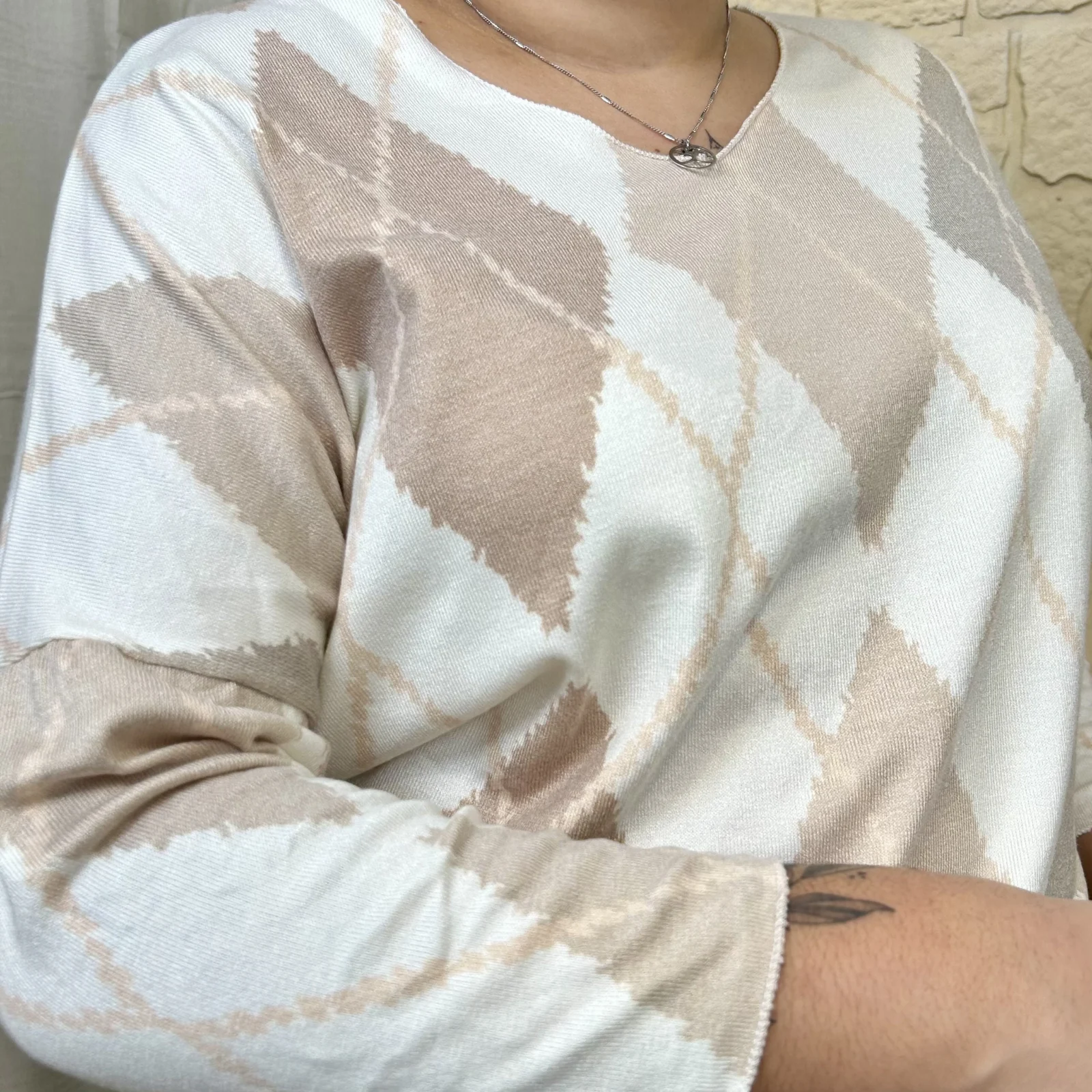 Ce pull aux motifs losanges est idéal pour apporter une touche colorée à tous vos looks ! A associer avec un jean et une paire de baskets.