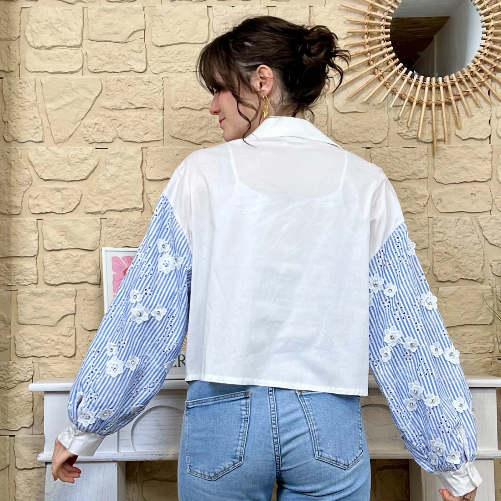 Associez-la à un jean taille haute pour un look casual chic, ou à un pantalon blanc pour une silhouette lumineuse et élégante.
