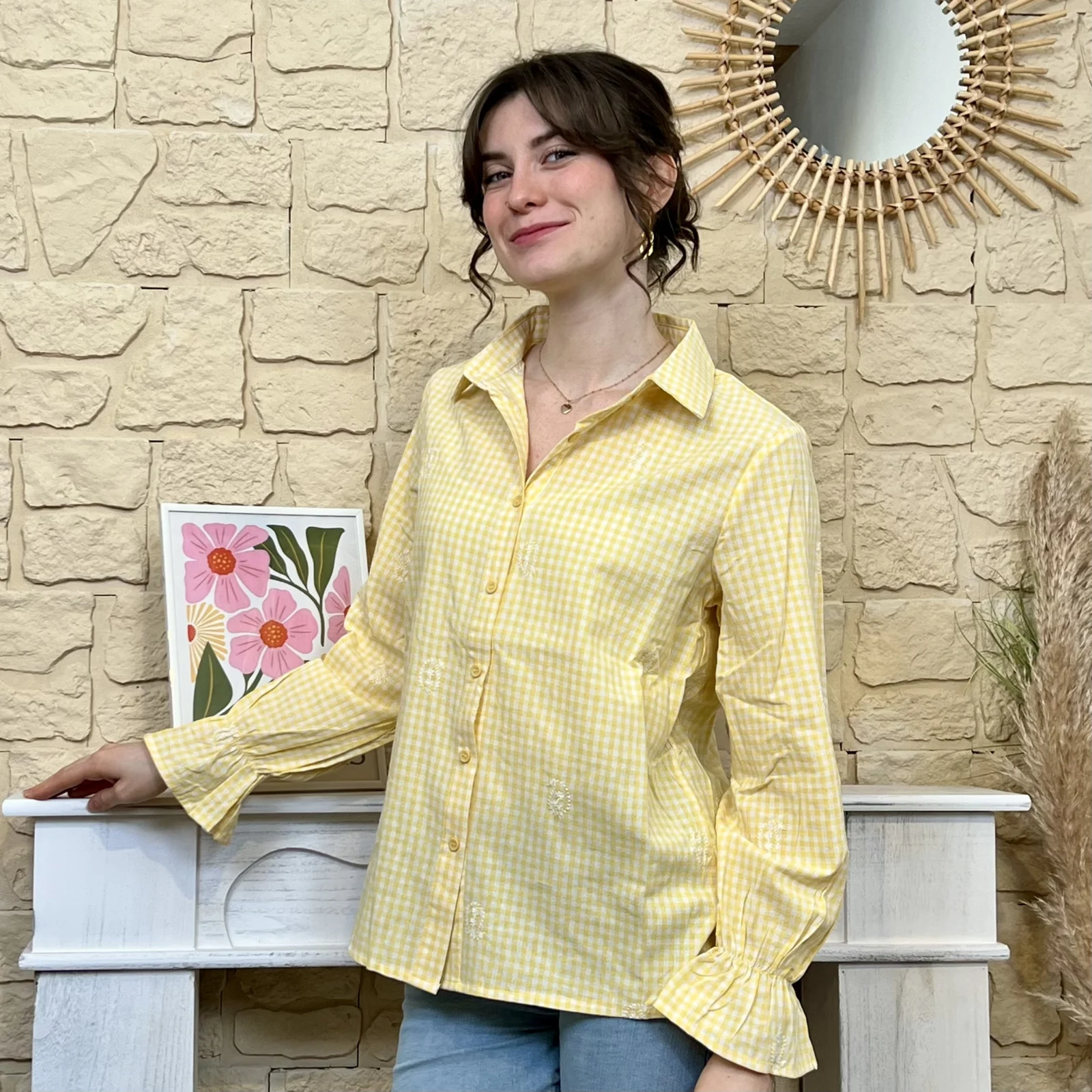 Portée avec un jean, une jupe ou sous un gilet, cette chemise est idéale pour composer des looks lumineux et pleins de caractère.