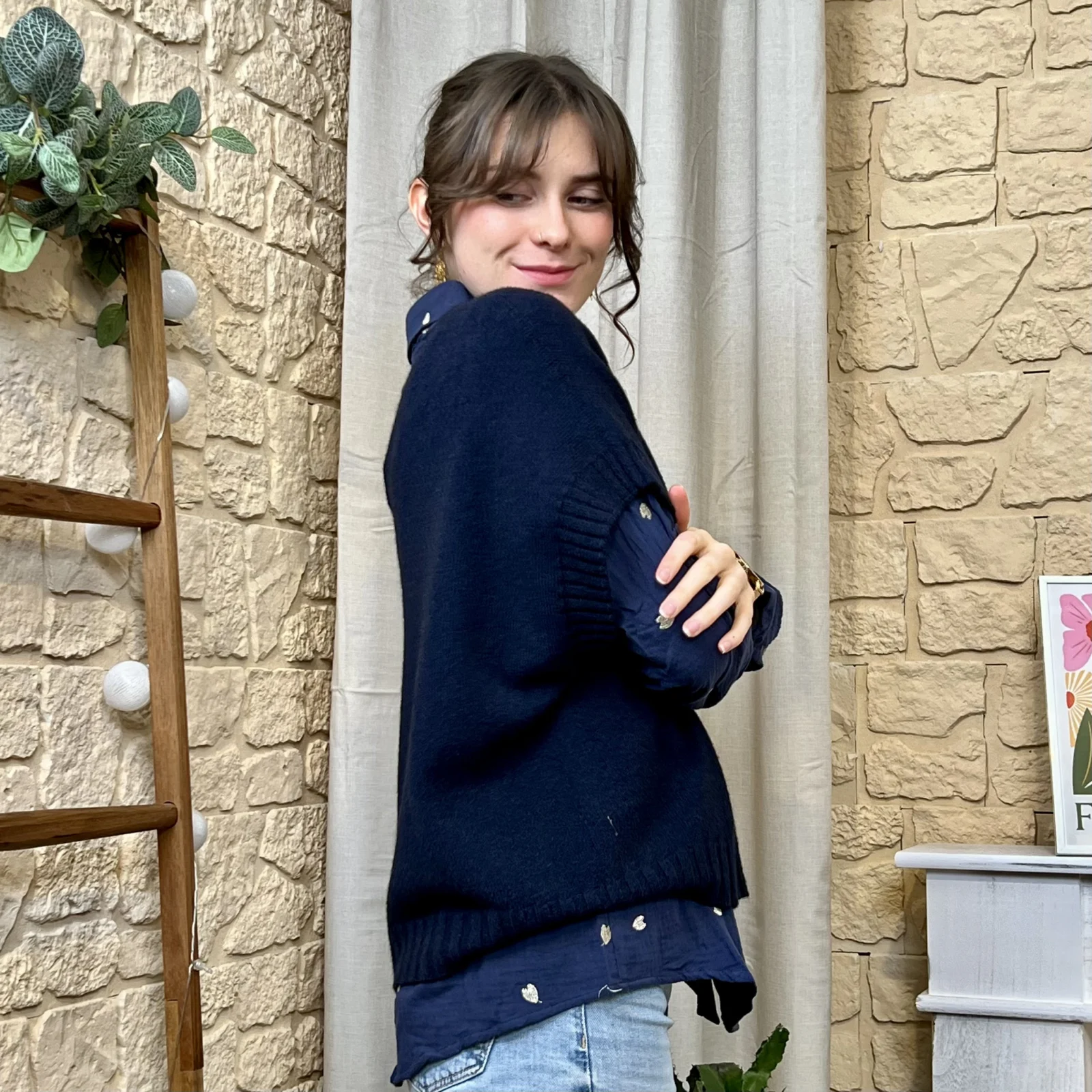 Portez-le sur une chemise oversize avec un jean pour un look tendance ou sur une blouse plus habillée pour une silhouette élégante et moderne.