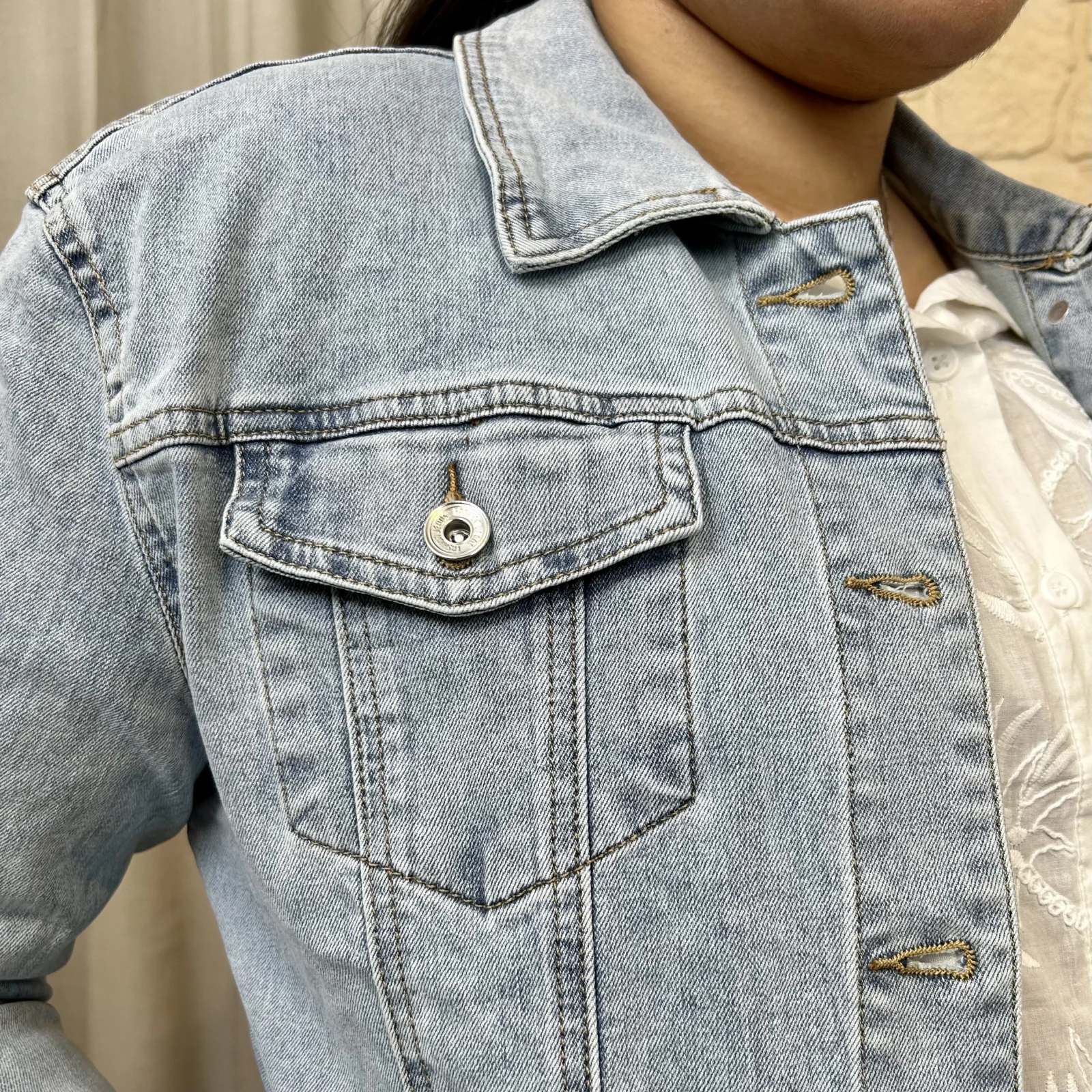 Cette veste en jean est idéale pour la saison ! Elle apporte une touche tendance et moderne à tous vos looks.