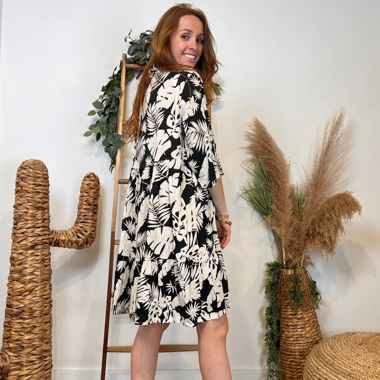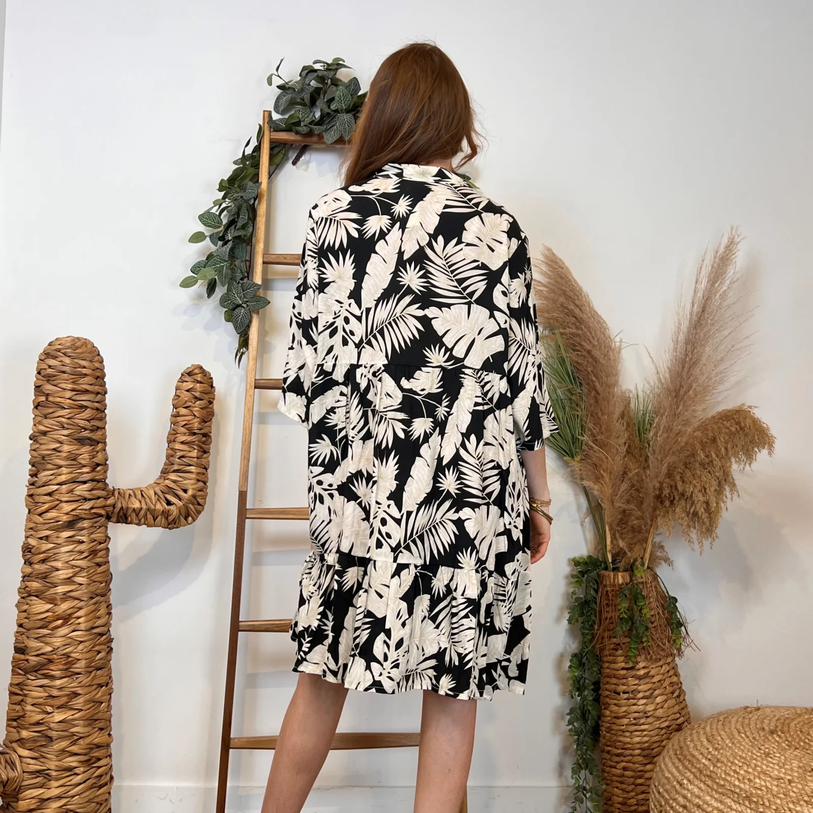 I965- Robe feuillages manches (Tu) 🇮🇹