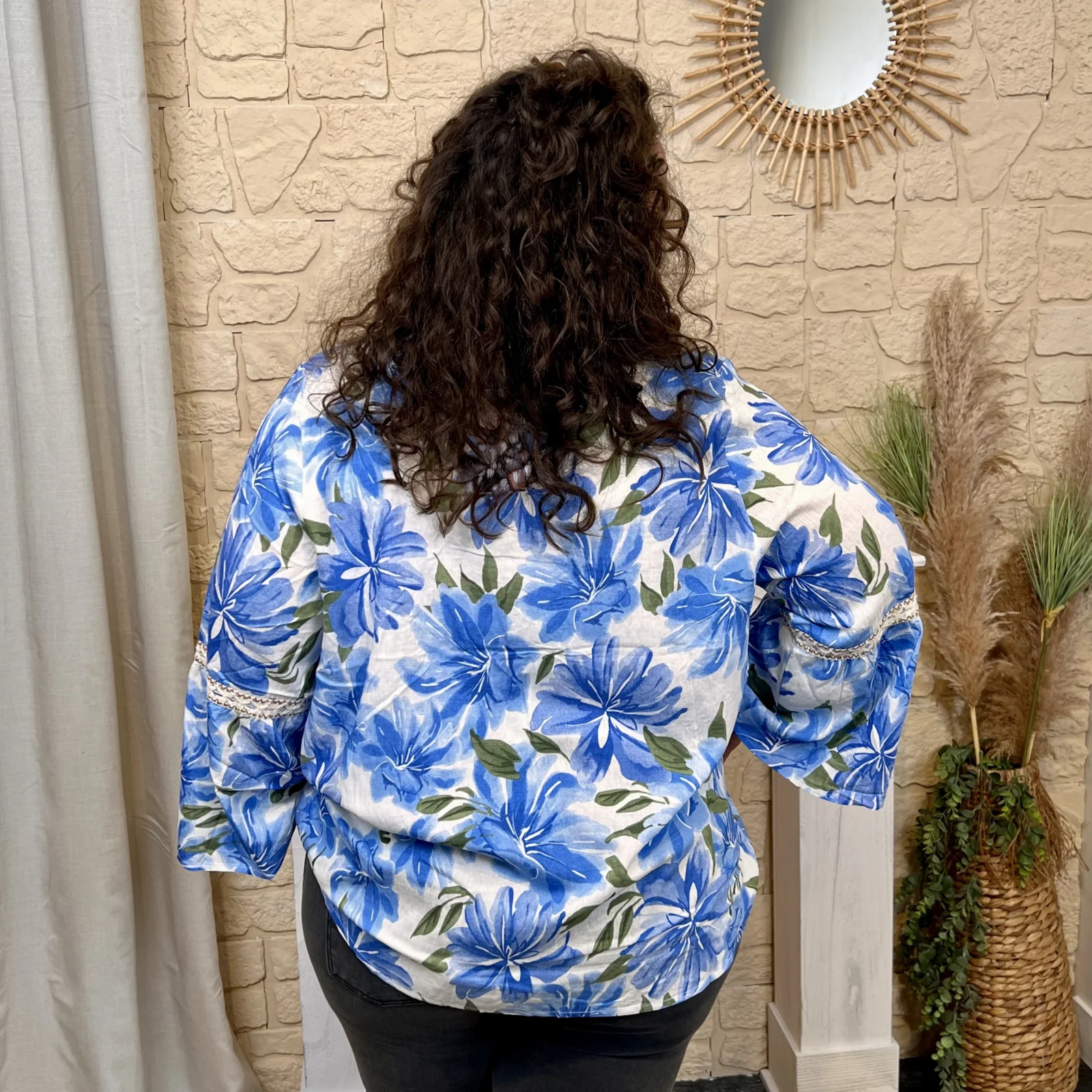 Son imprimé floral aux tons bleus est idéal pour une allure à la fois élégante et décontractée.