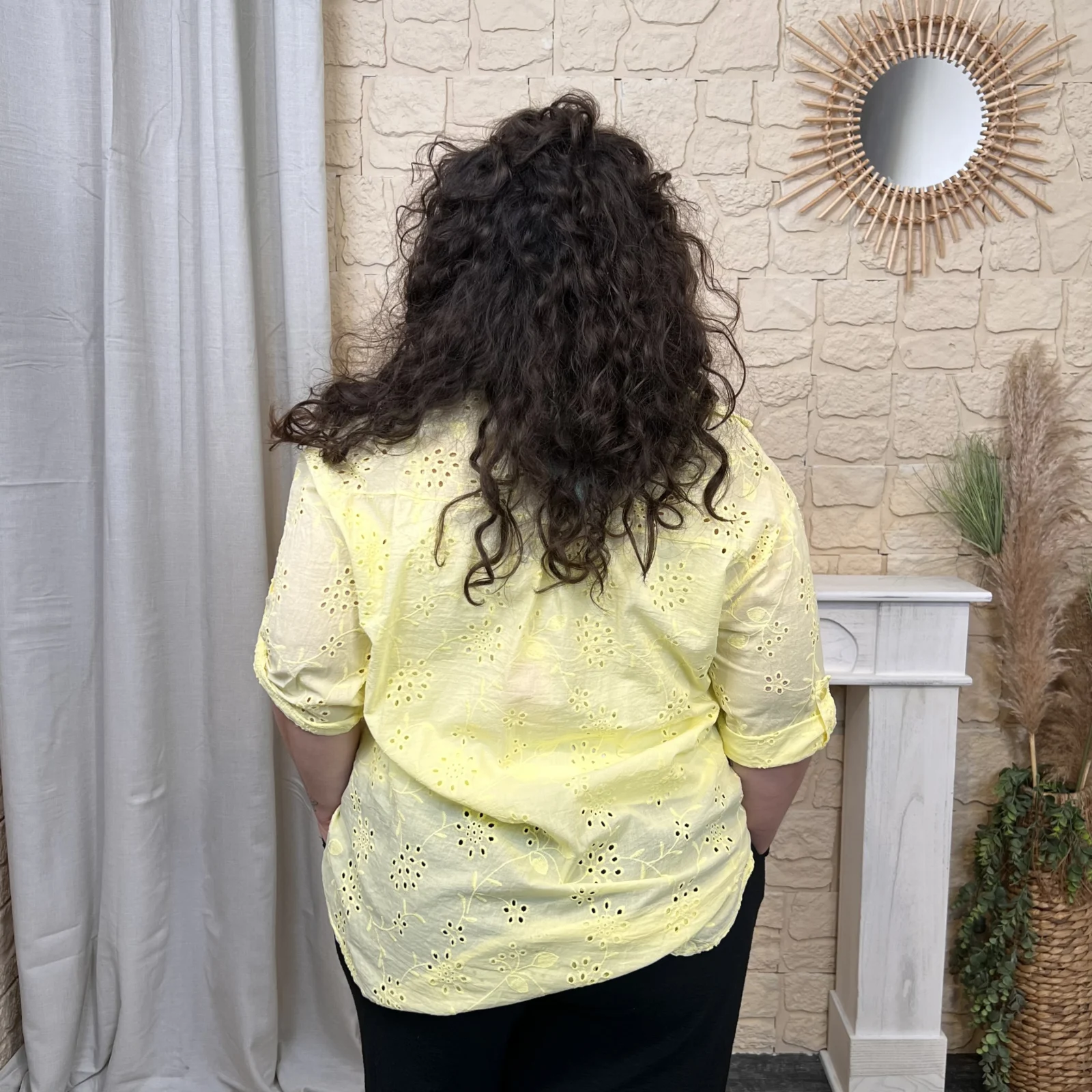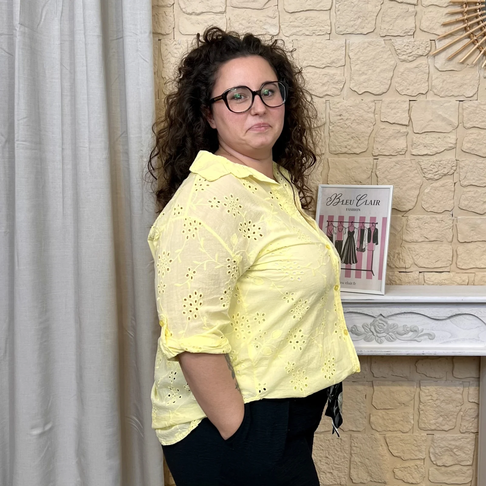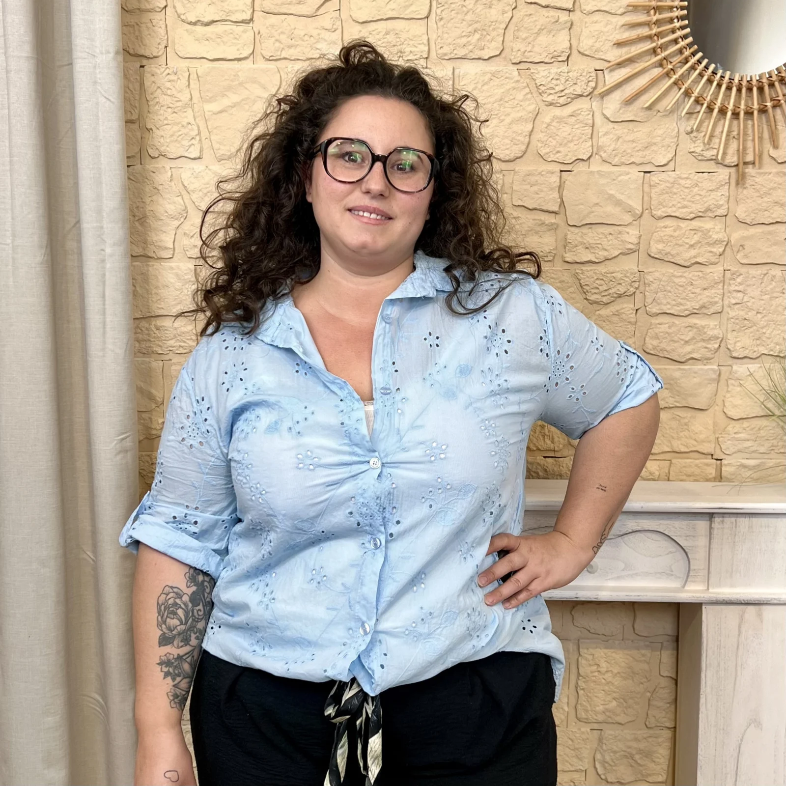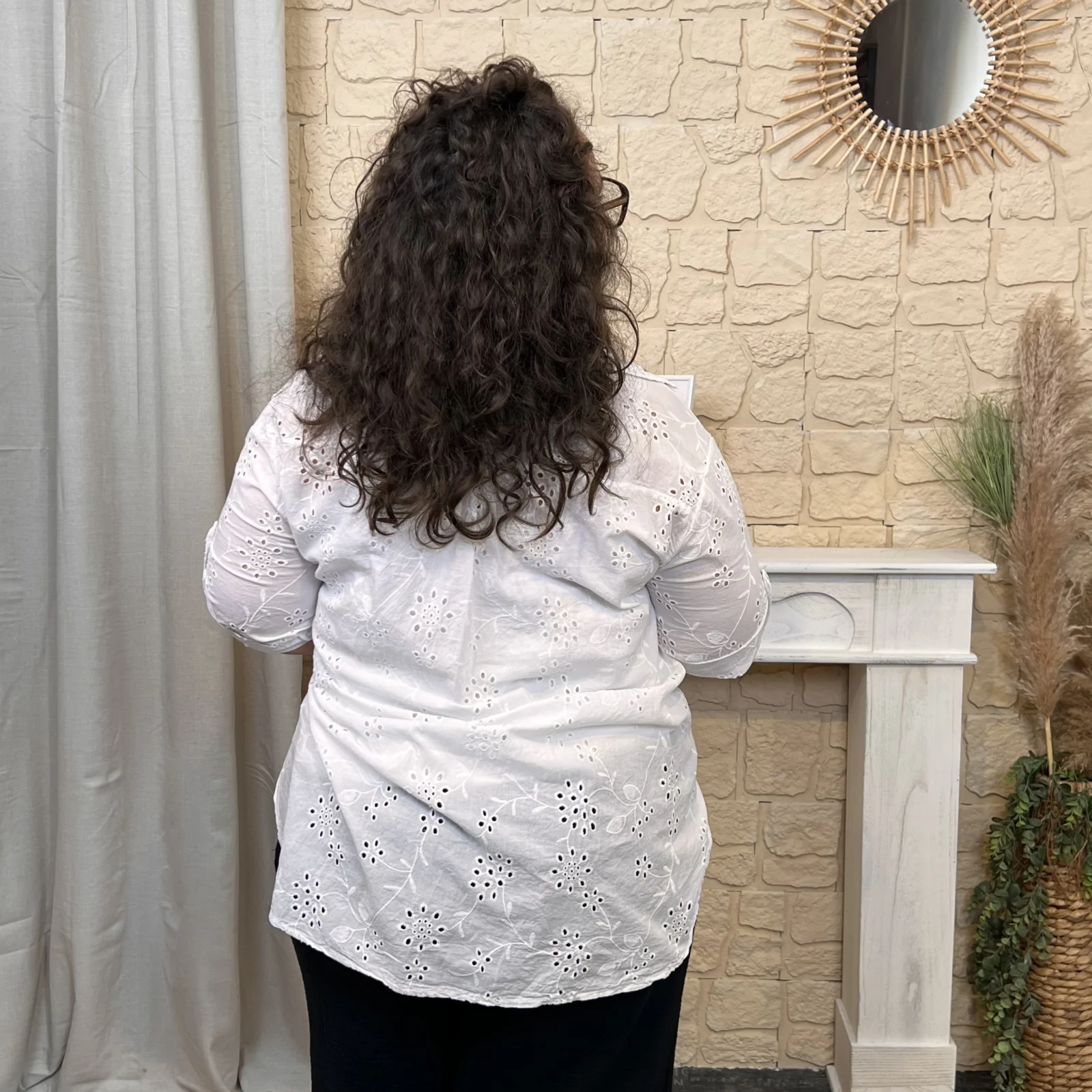 Cette chemise en coton séduit par ses broderies ajourées délicates et sa coupe ample qui offre un confort optimal. Sa longueur asymétrique apporte une touche moderne et flatteuse, idéale pour un look à la fois élégant et décontracté.
