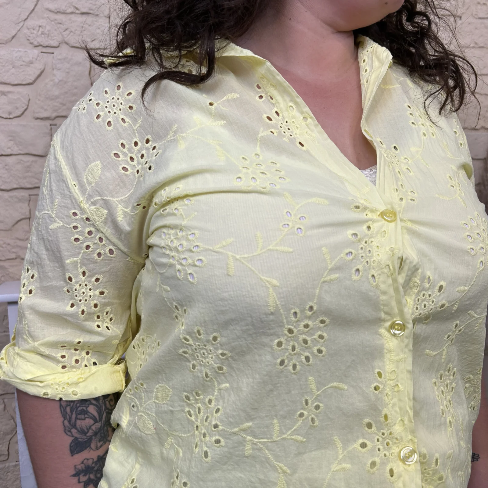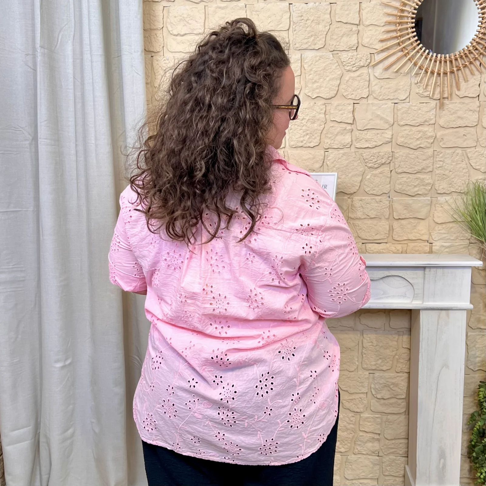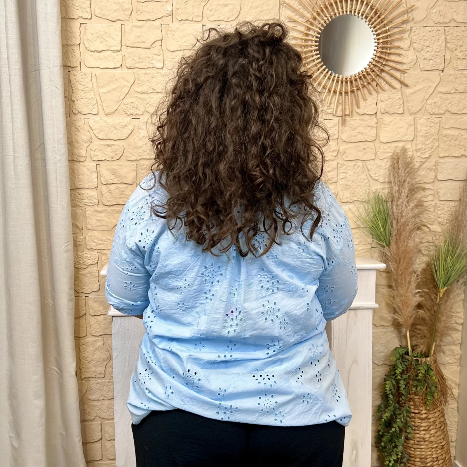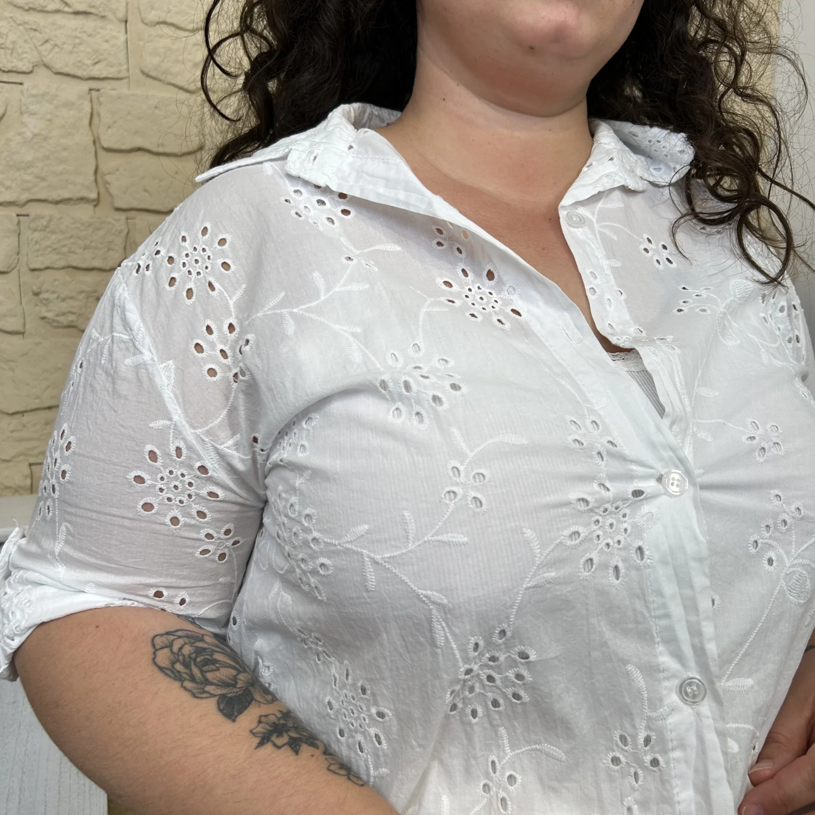 Cette chemise en coton séduit par ses broderies ajourées délicates et sa coupe ample qui offre un confort optimal. Sa longueur asymétrique apporte une touche moderne et flatteuse, idéale pour un look à la fois élégant et décontracté.