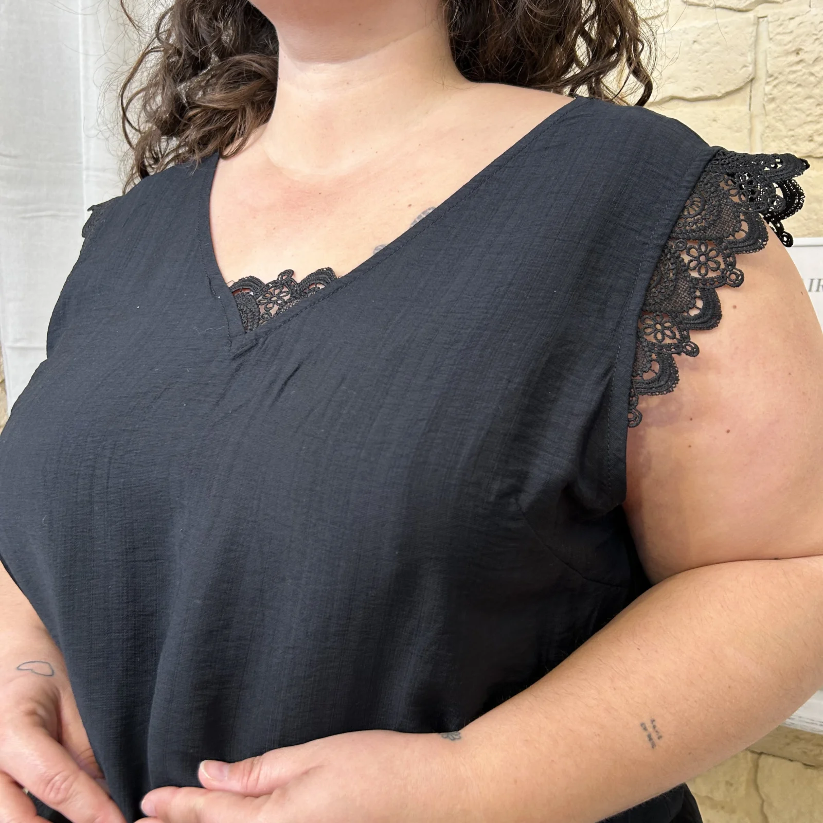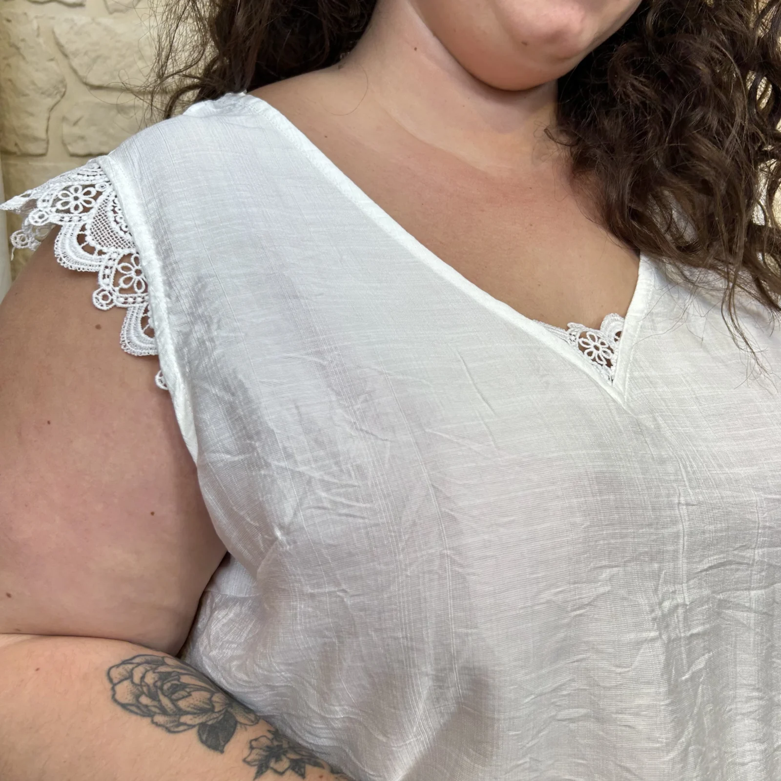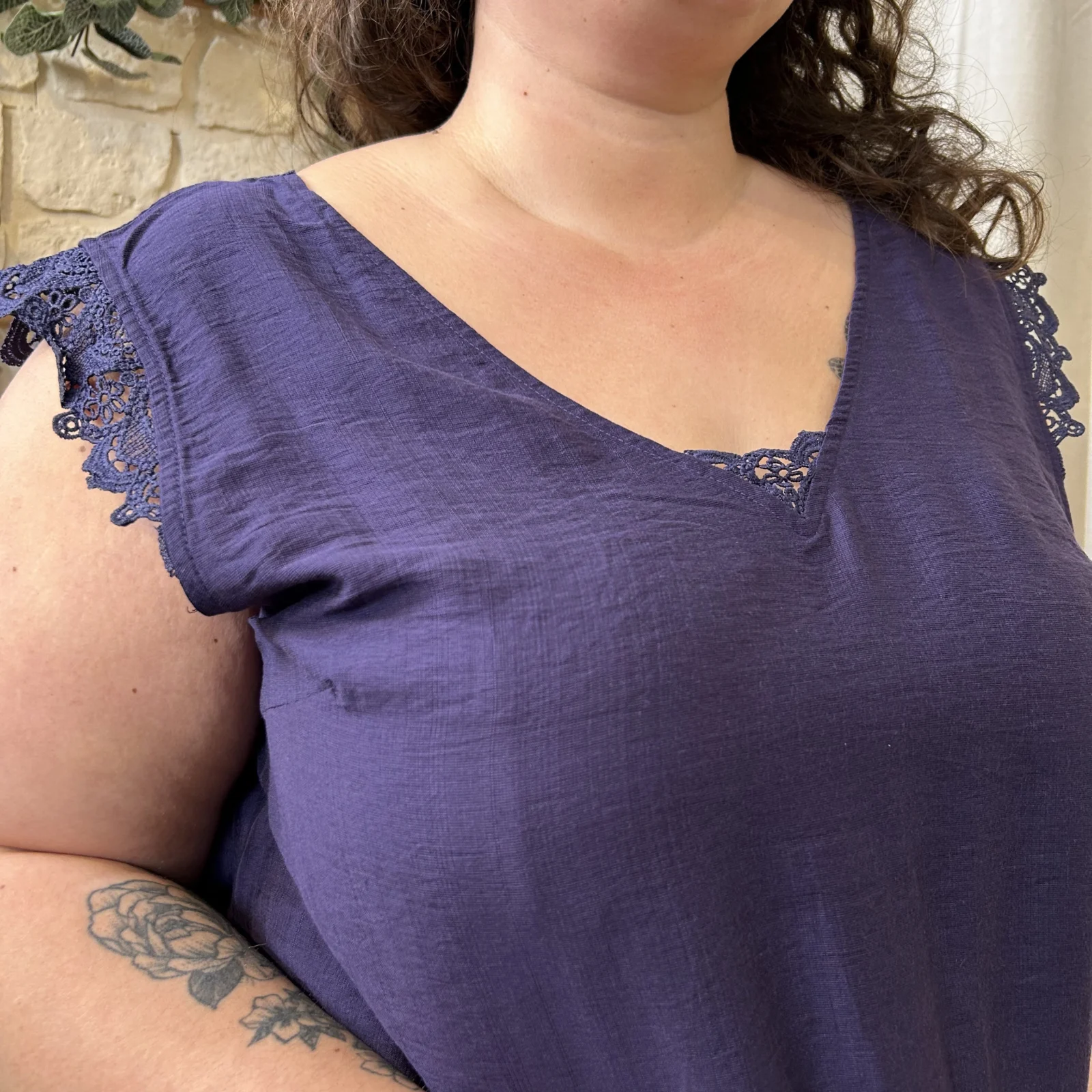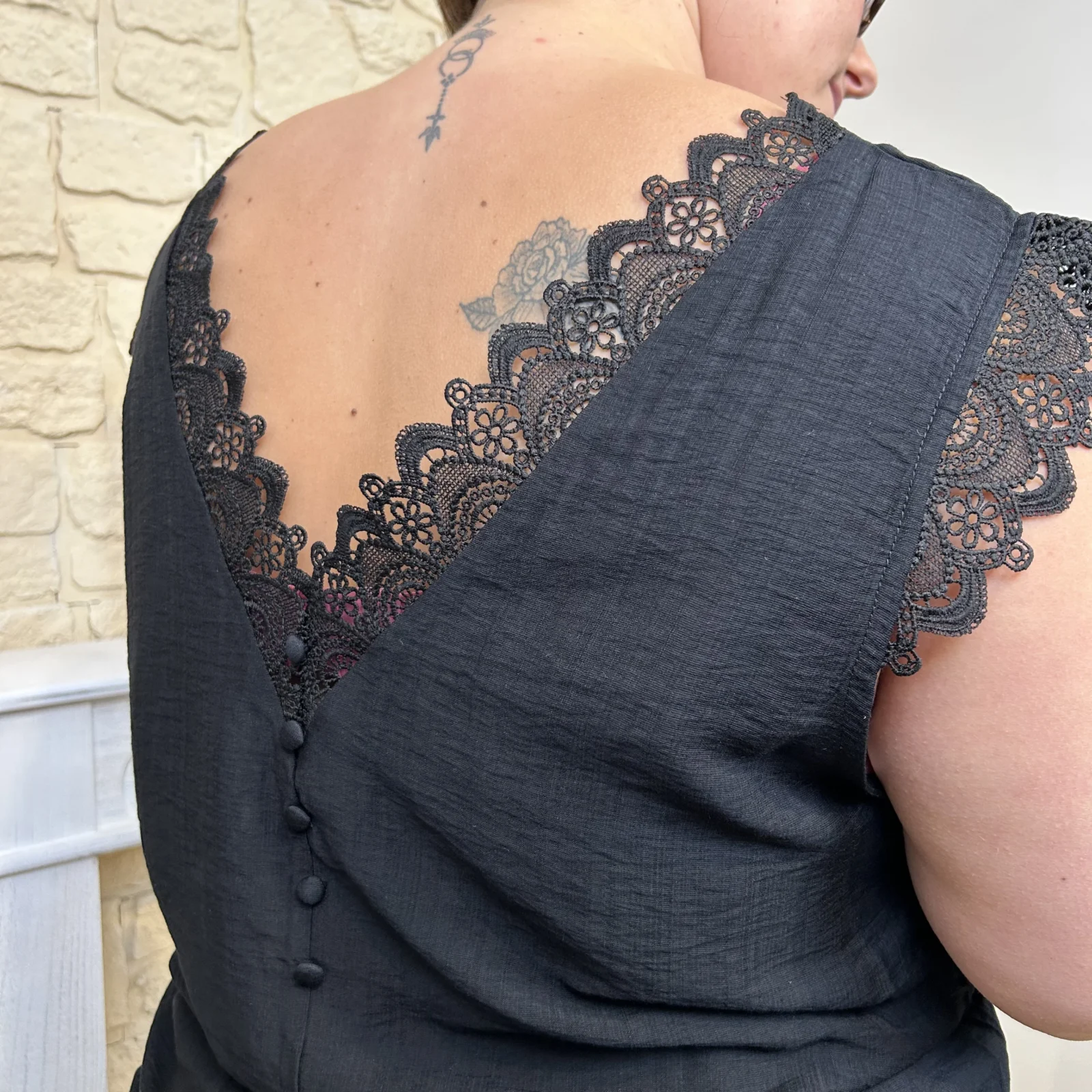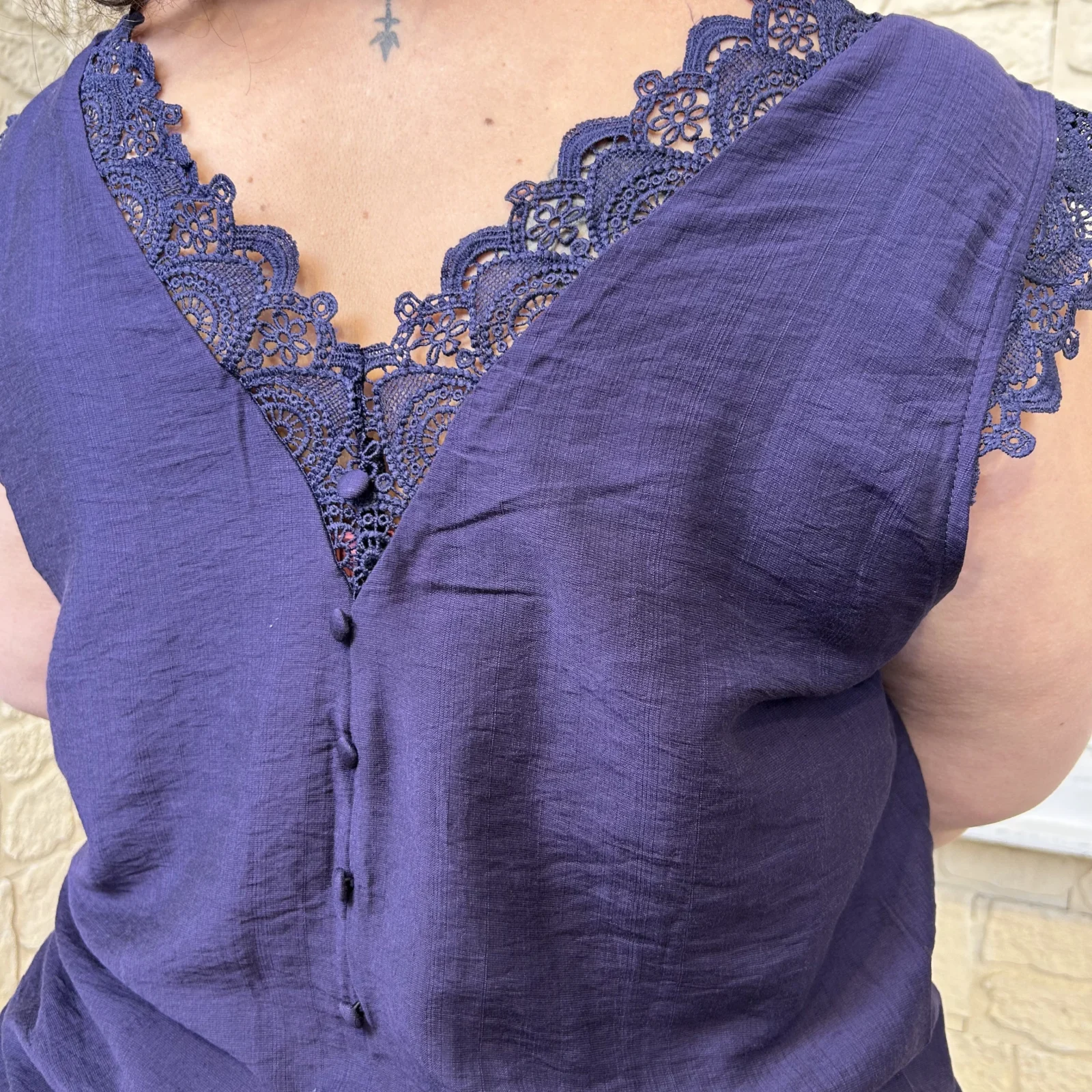 – Encolure en V sublimée par une dentelle travaillée