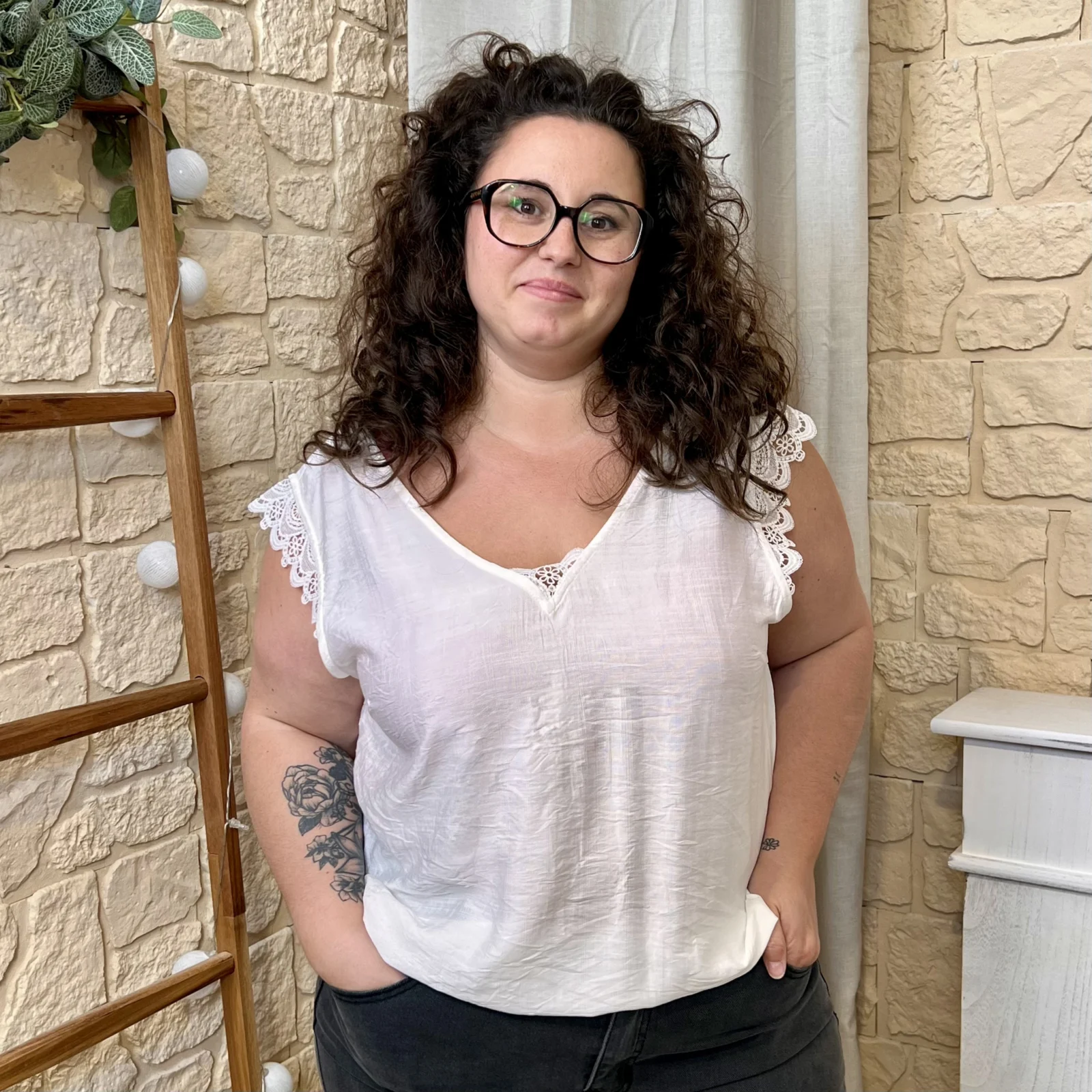 Une blouse élégante et féminine aux détails raffinés.