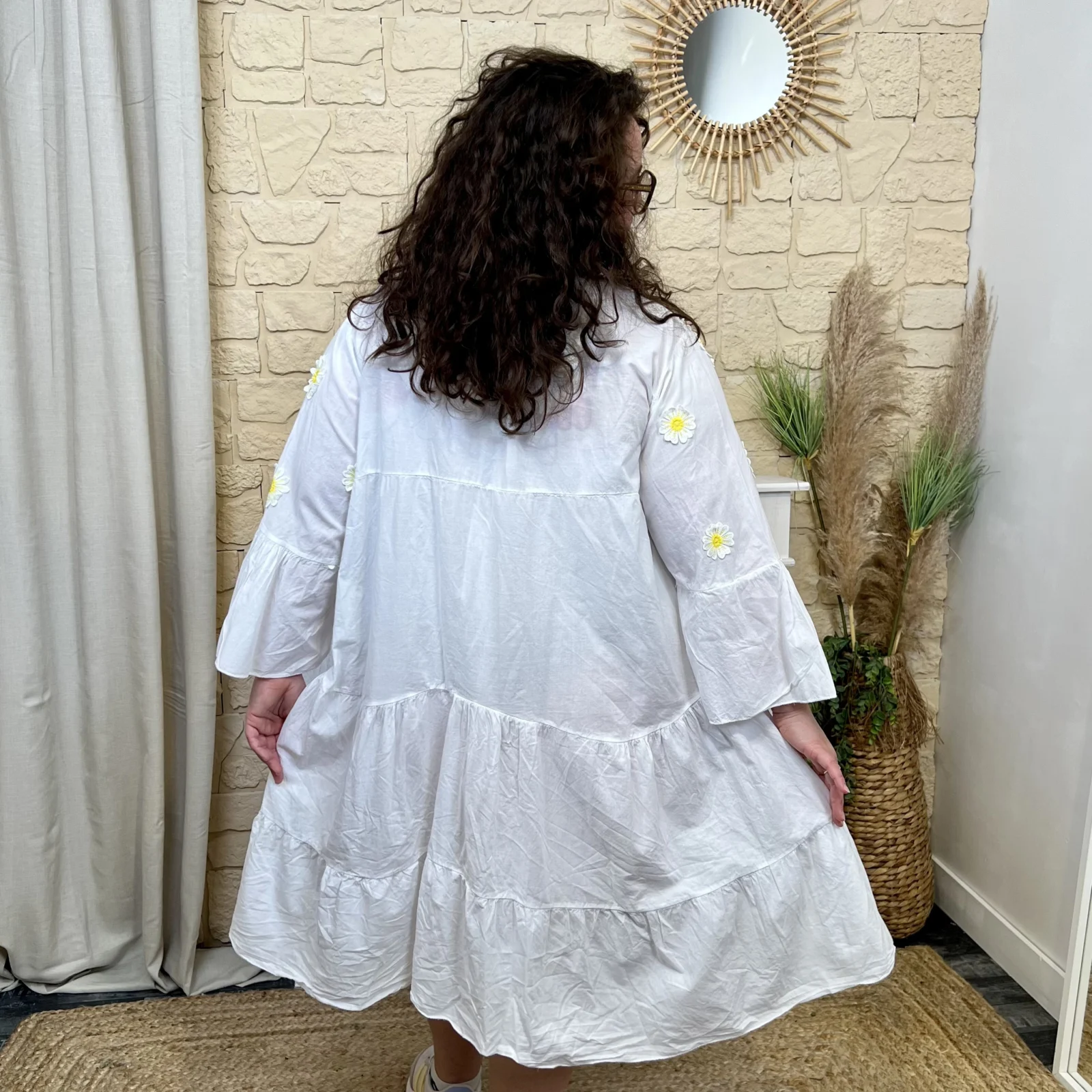 Ce robe apporte douceur et féminité à vos tenues ! Parfaite pour la saison, son motif marguerites et sa coupe trapèze ultra flatteuse sauront vous mettre en valeur.