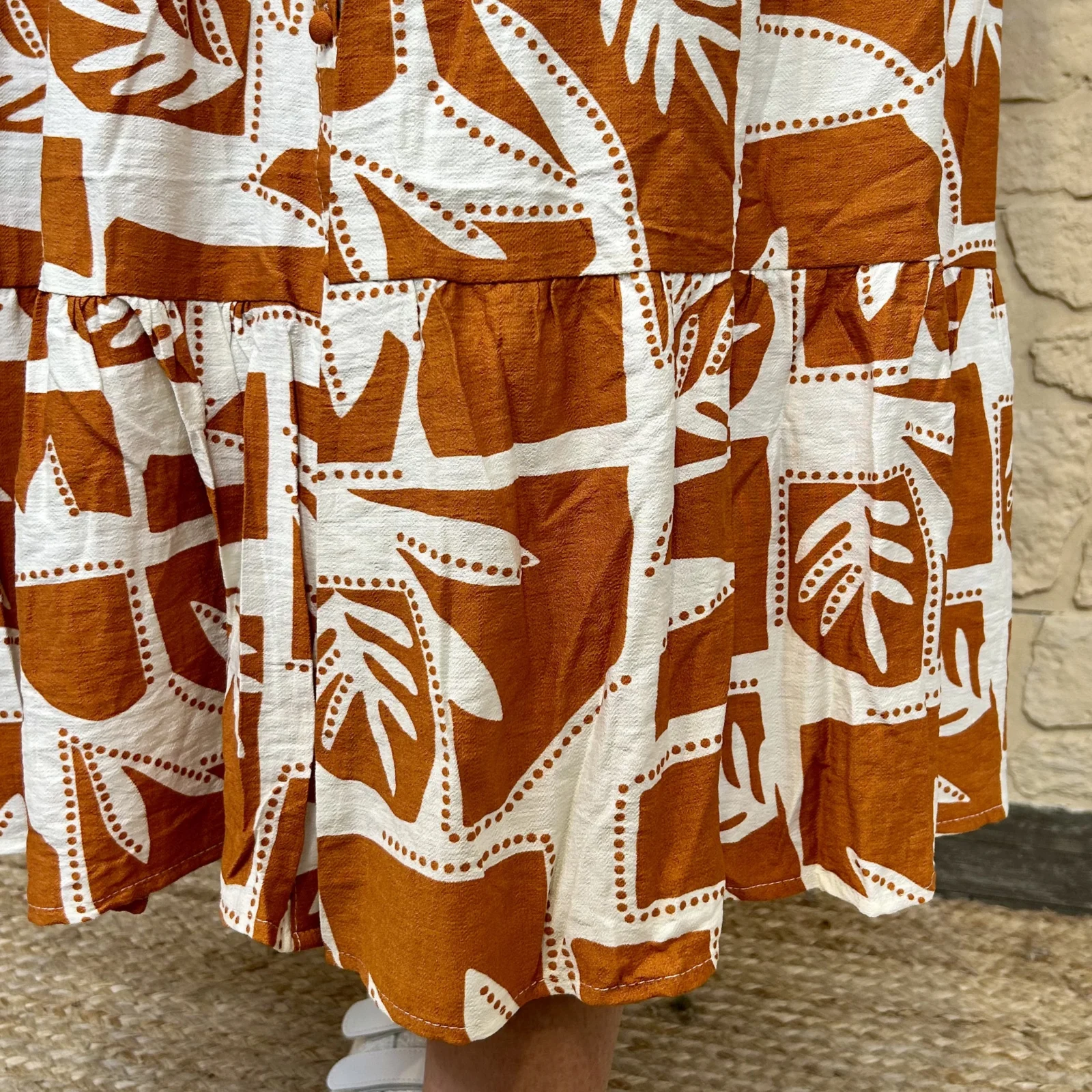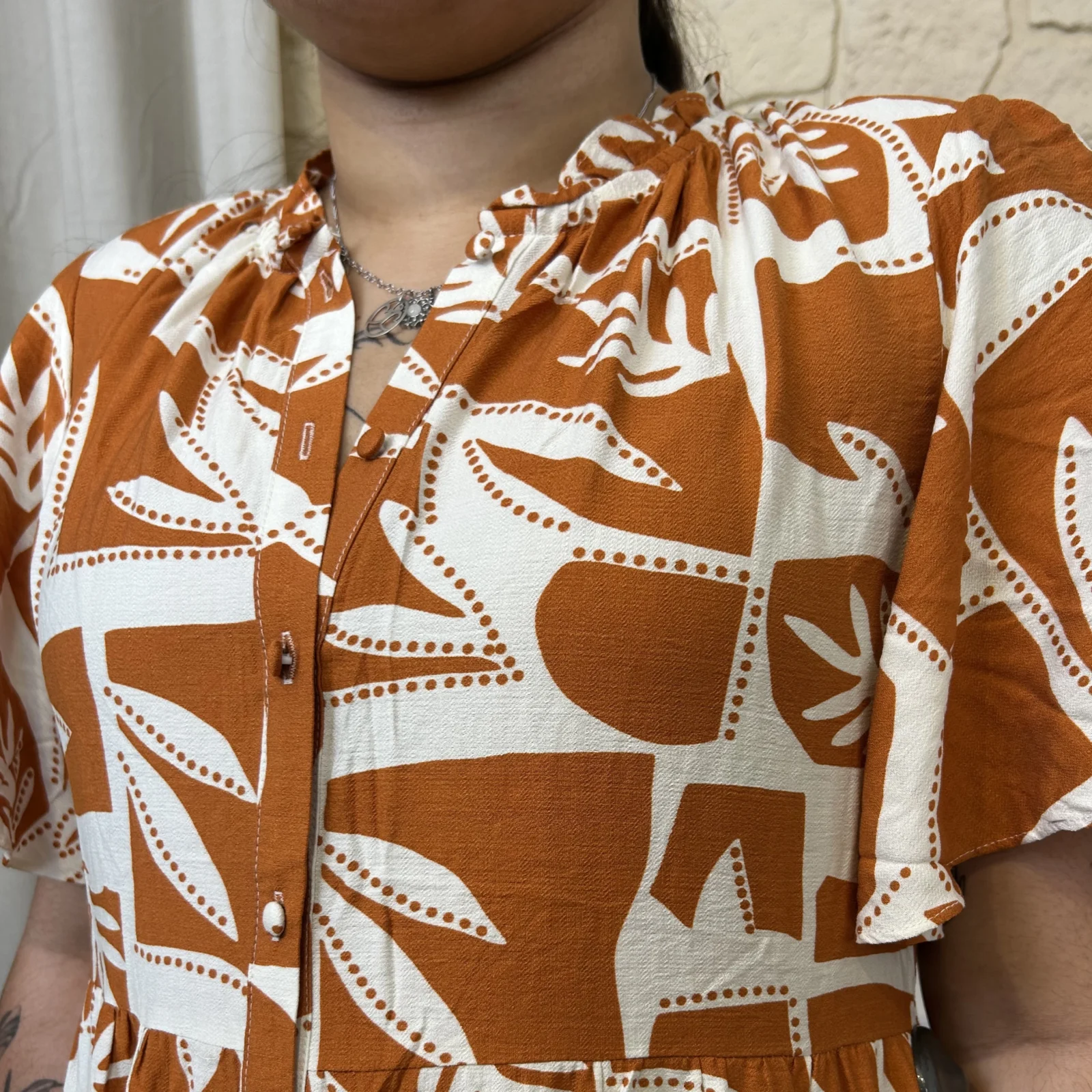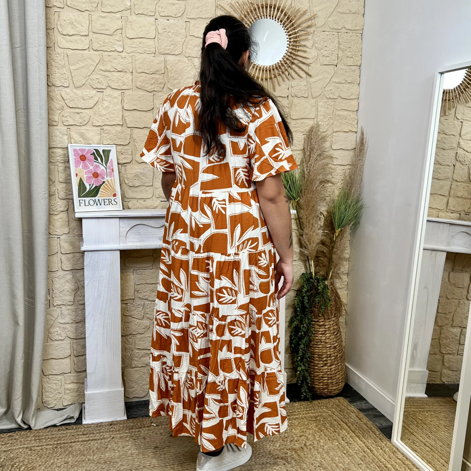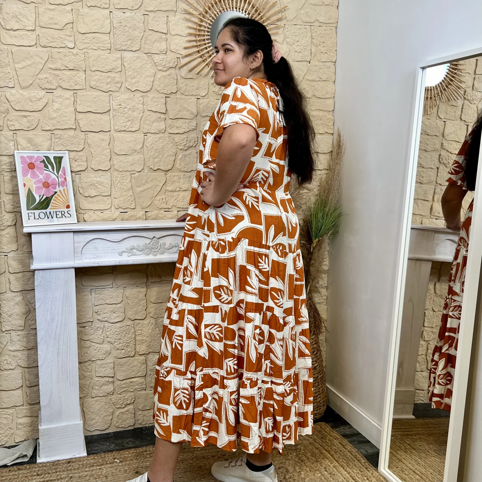 Cette robe est idéale pour la saison. Son col et ses manches volantées apportent une touche d’élégance.