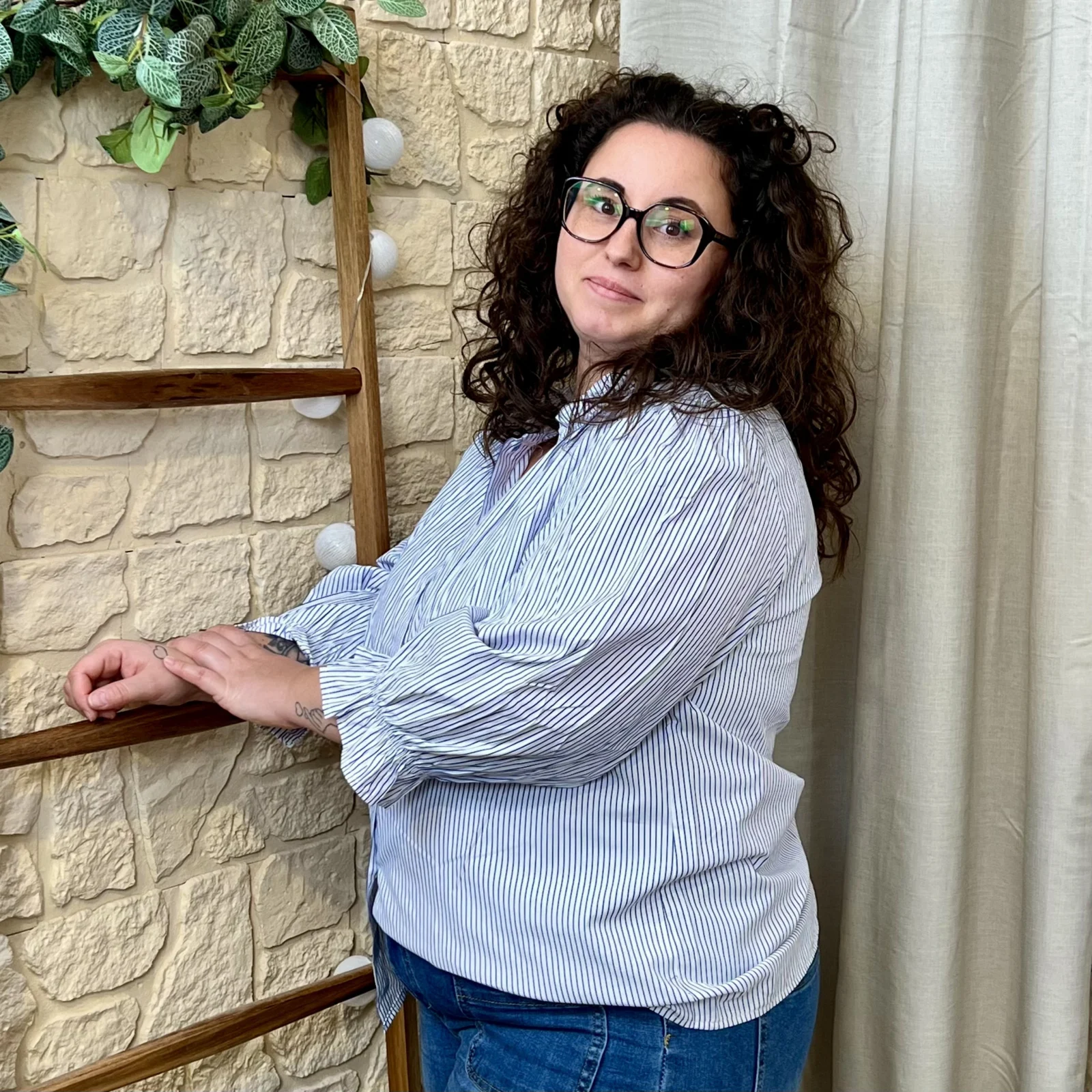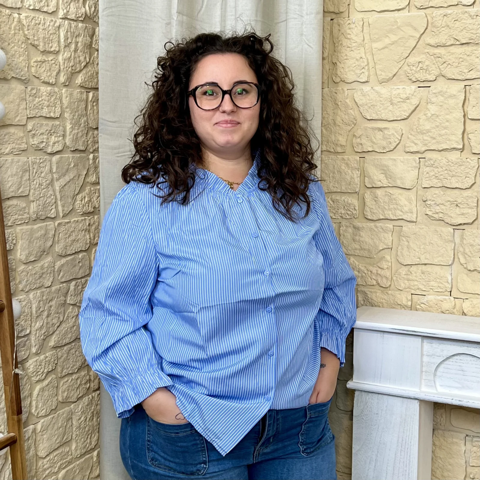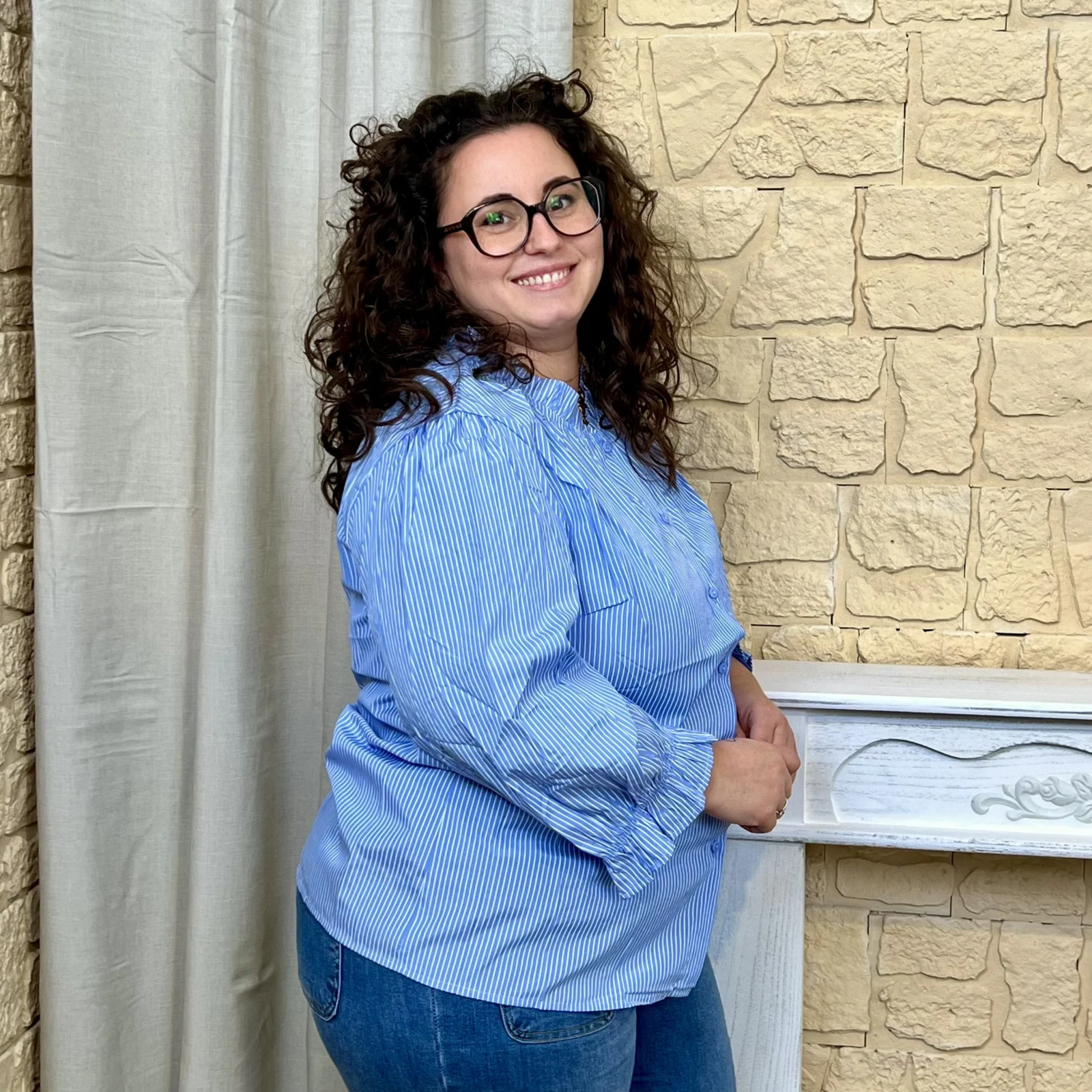 Facile à associer, cette blouse se porte aussi bien avec un pantalon en lin pour un look chic et naturel qu’avec un jean pour une tenue plus casual.