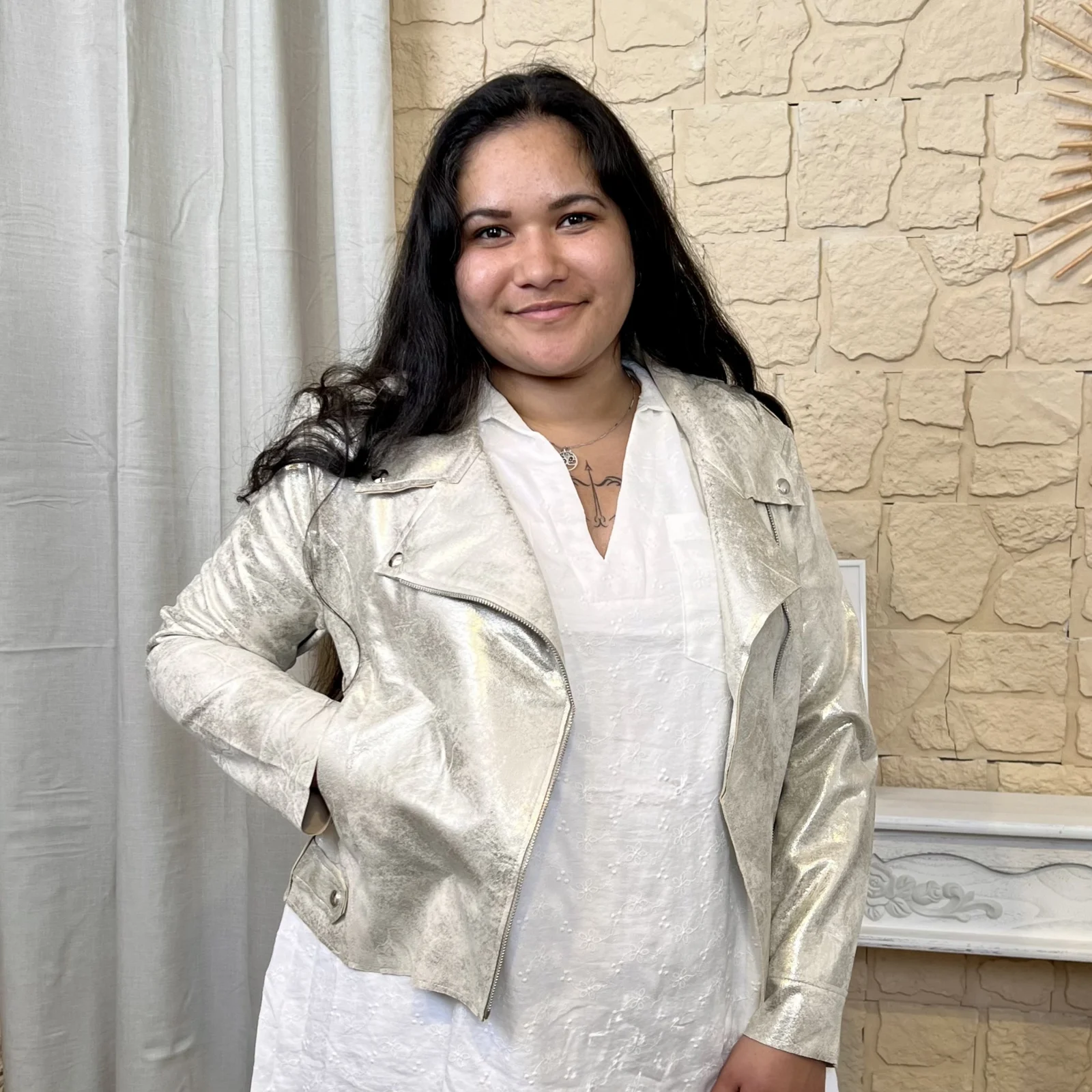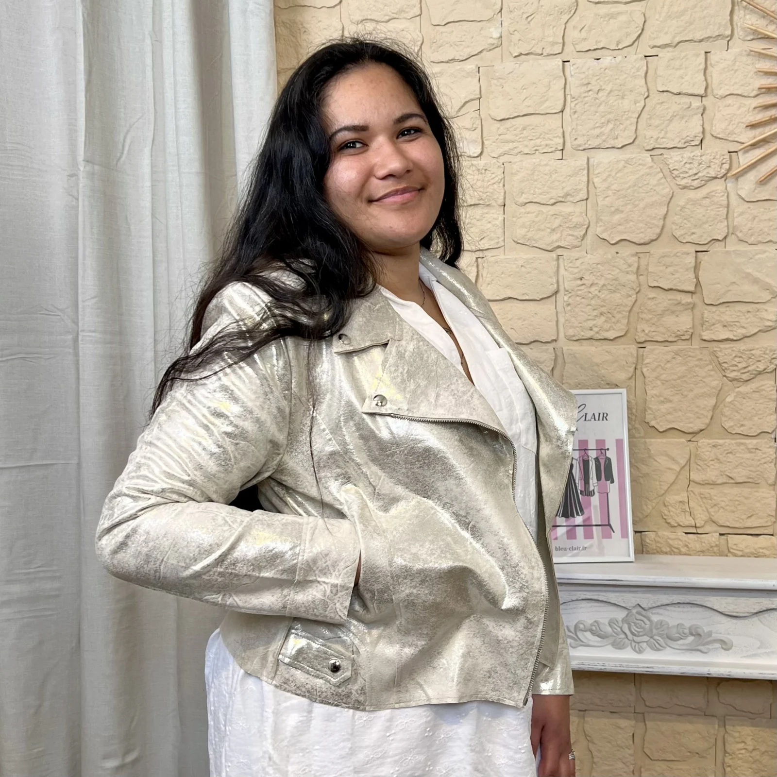 Tendance et confortable, ce perfecto en suédine est la pièce idéale de la saison. Facile à porter sur une robe ou un jean Voggo by BleuClair, il se porte pour toutes vos occasions !