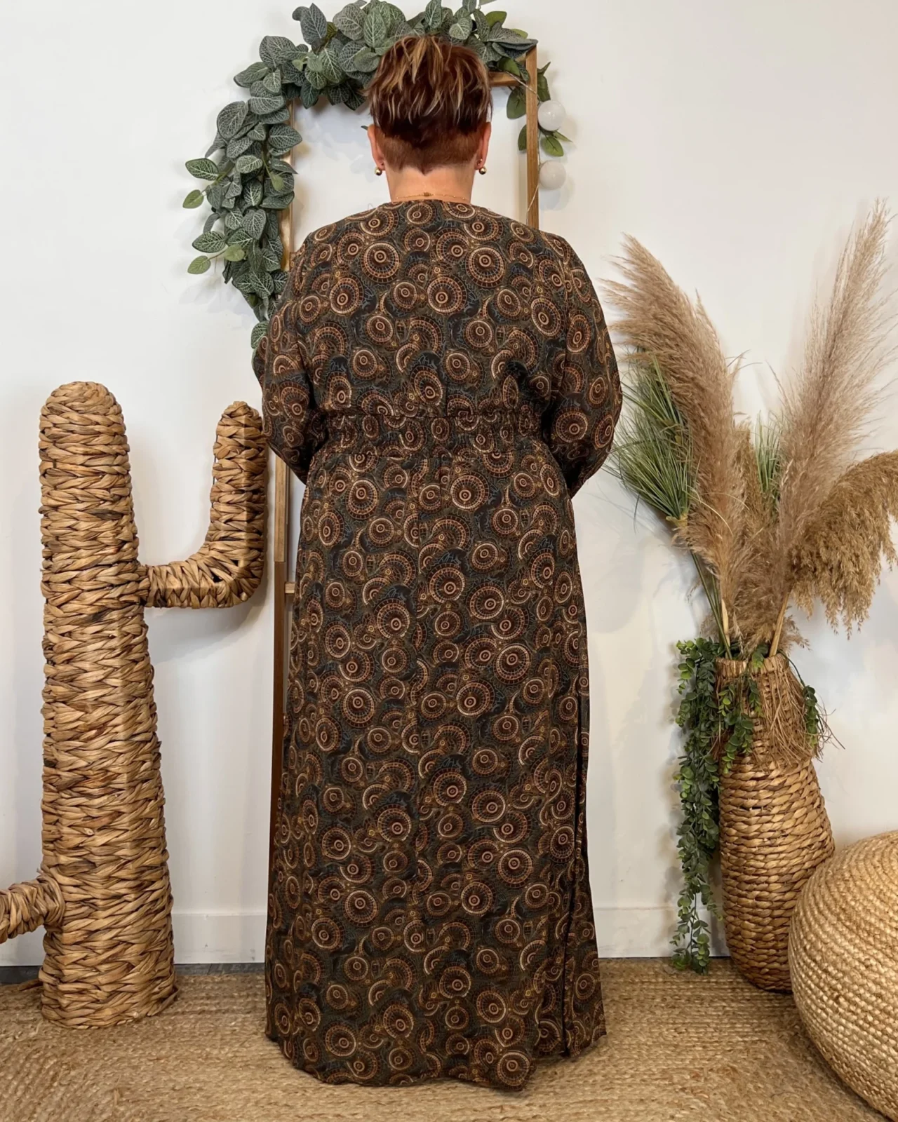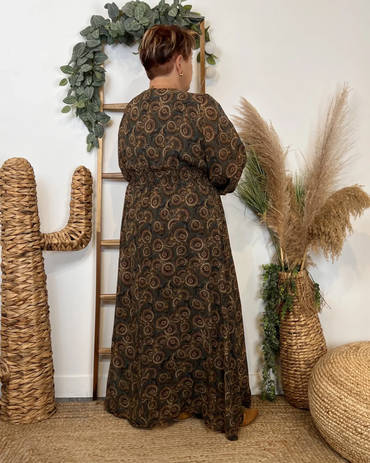 Robe longue en voilage à l’imprimé feuillage. manches longues, avec un magnifique col V plongeant et croisé. Cette robe Maëlle sera à coup sûr un modèle phare de votre dressing. Cintrée avec un bandeau plat au niveau de la taille, elle sera le bon compromis pour être branchée tout en étant à l’aise. Pour finir votre look découvrez nombreux accessoires. (Chaussures, sacs…).