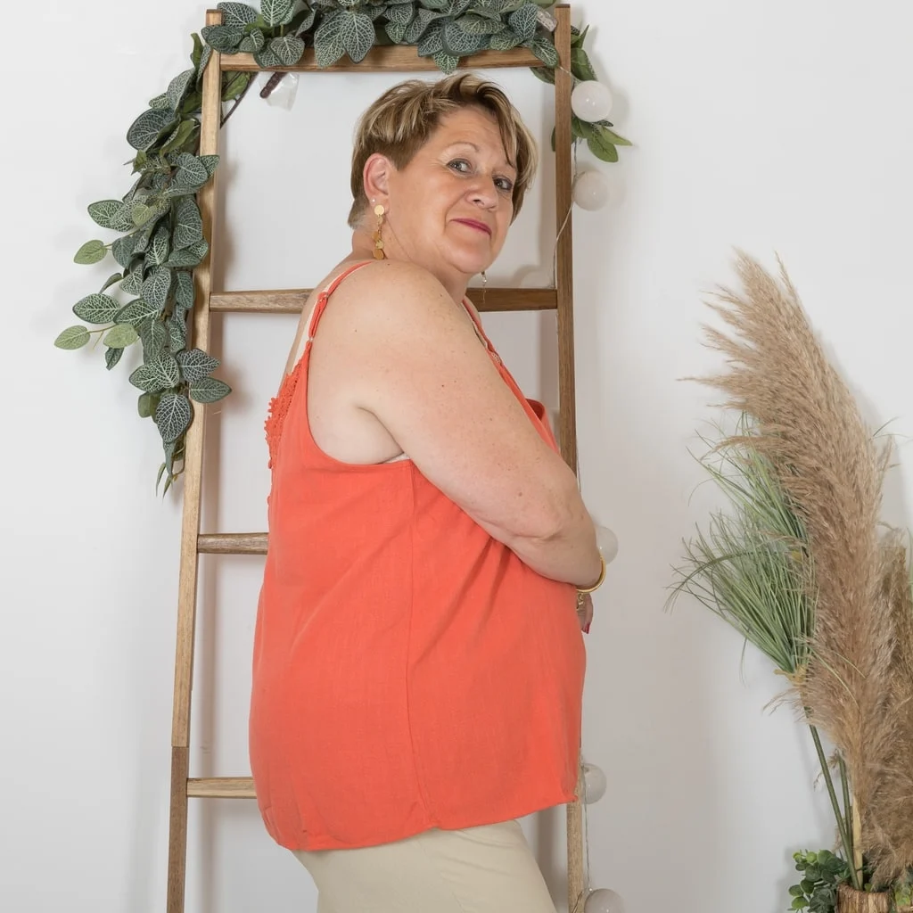 Choisissez votre taille habituelle T40 (L) T42 (XL) T44 (2XL) T46 (3XL) T48 (4XL), pour ce débardeur fines bretelles Maëlle qui est un basique indispensable à avoir dans son dressing. Ce top est polyvalent, confortable, élégant et facile à assortir. C’est un véritable passe-partout qui vous permettra de créer une multitude de looks différents.