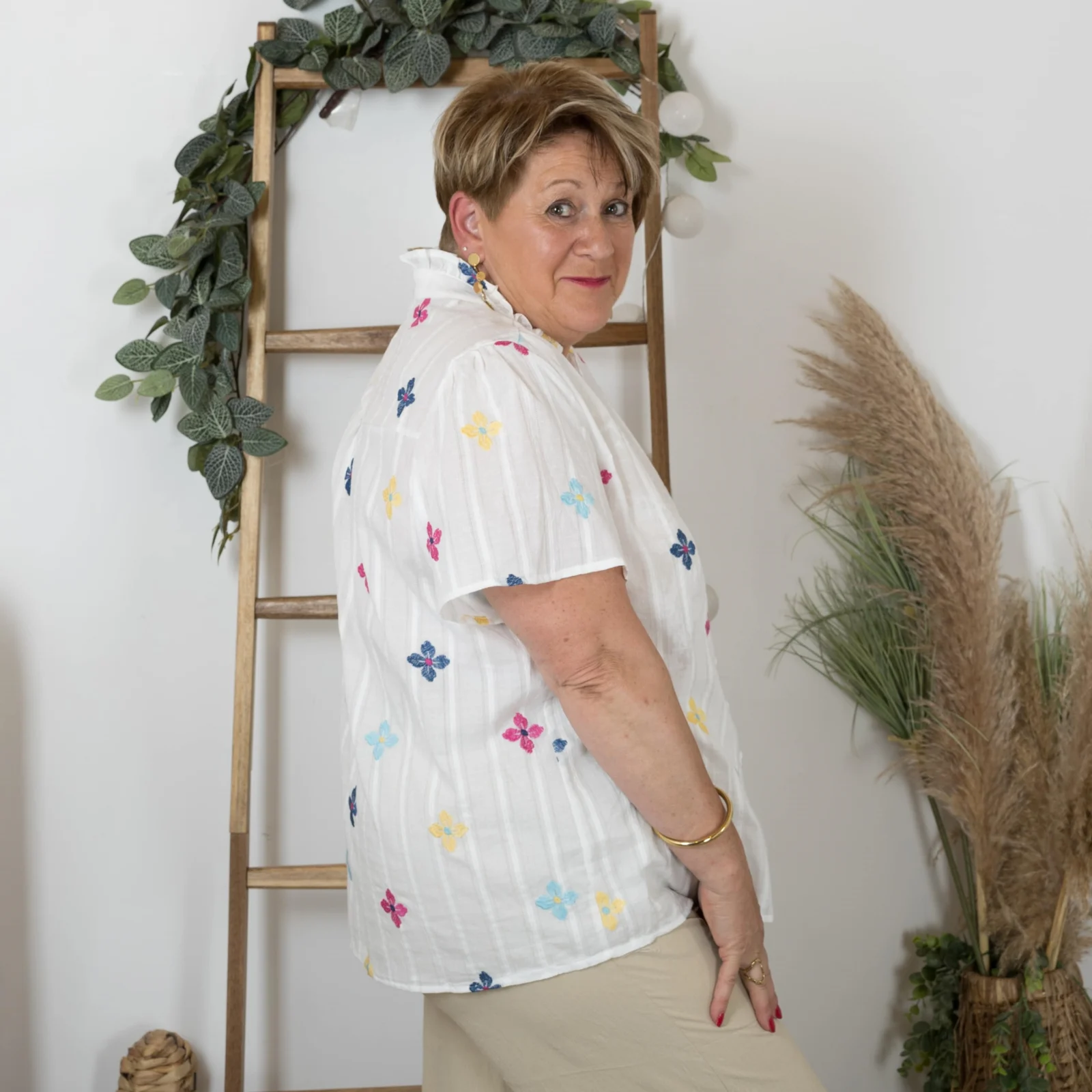 Modèle de blouse proposée en 5 tailles. Sur ce modèle, nous vous conseillons de choisir votre taille habituelle.